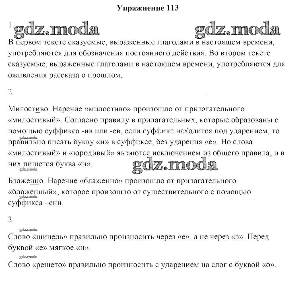 ОТВЕТ на задание № 113 Учебник по Русскому языку 8 класс Мурина