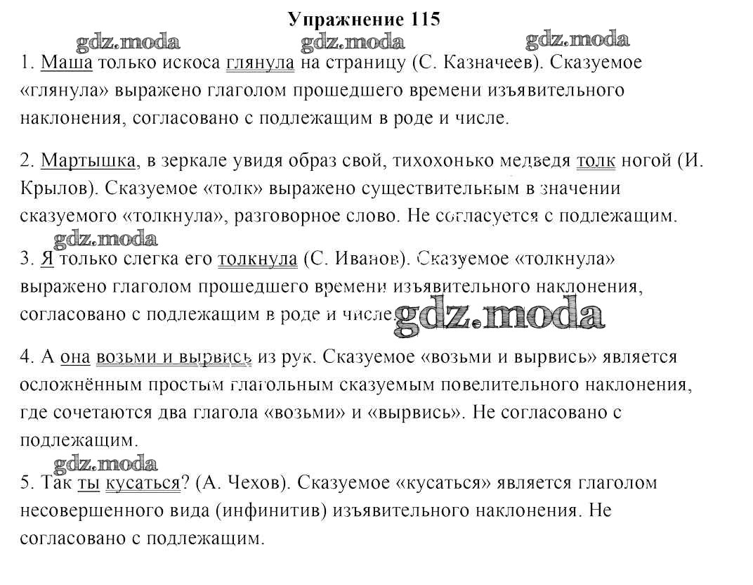 ОТВЕТ на задание № 115 Учебник по Русскому языку 8 класс Мурина