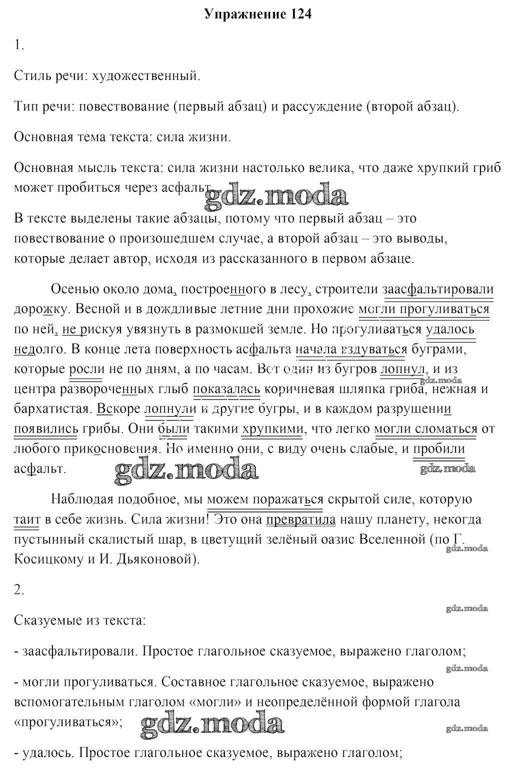 ОТВЕТ на задание № 124 Учебник по Русскому языку 8 класс Мурина