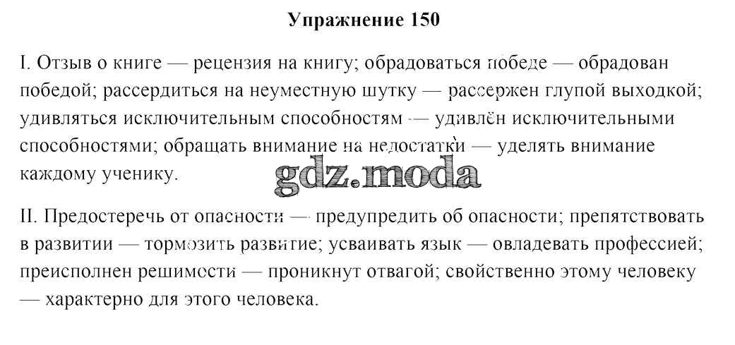 ОТВЕТ на задание № 150 Учебник по Русскому языку 8 класс Мурина