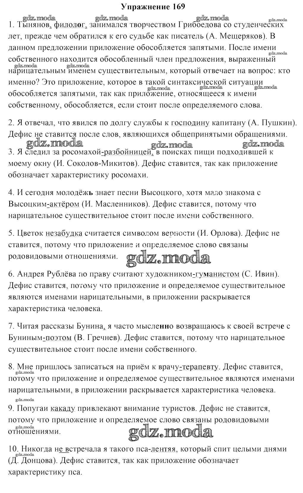 ОТВЕТ на задание № 169 Учебник по Русскому языку 8 класс Мурина