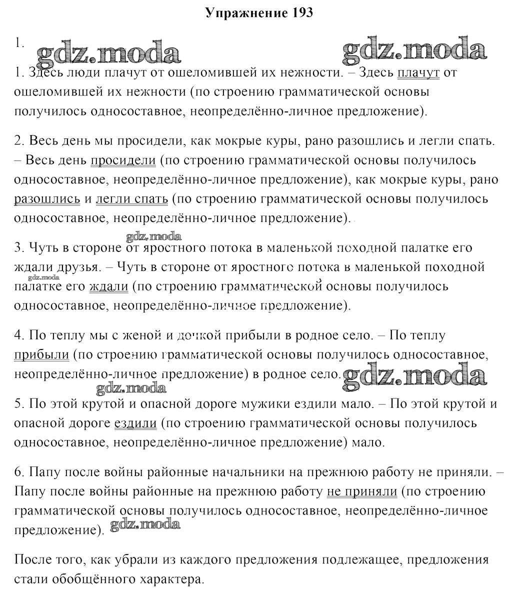 ОТВЕТ на задание № 193 Учебник по Русскому языку 8 класс Мурина