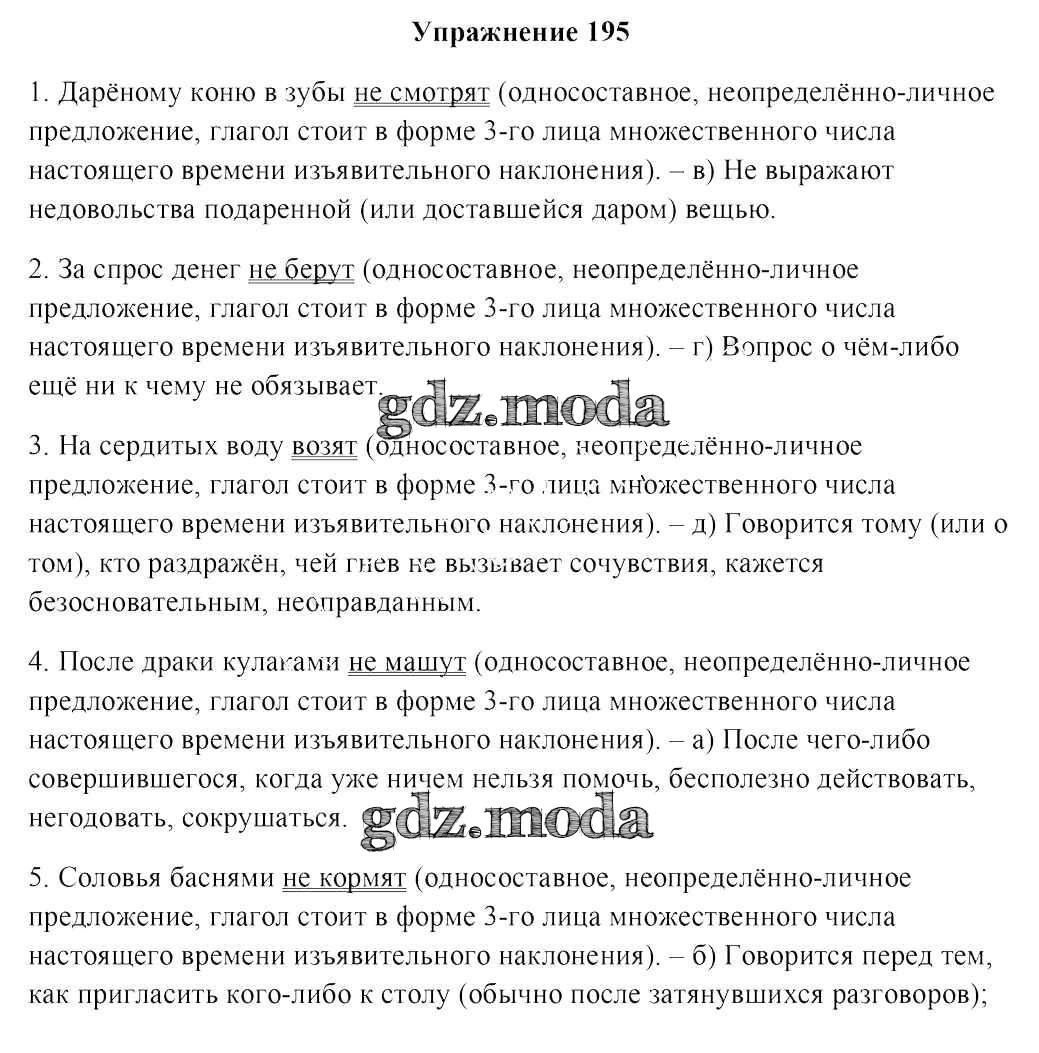 ОТВЕТ на задание № 195 Учебник по Русскому языку 8 класс Мурина
