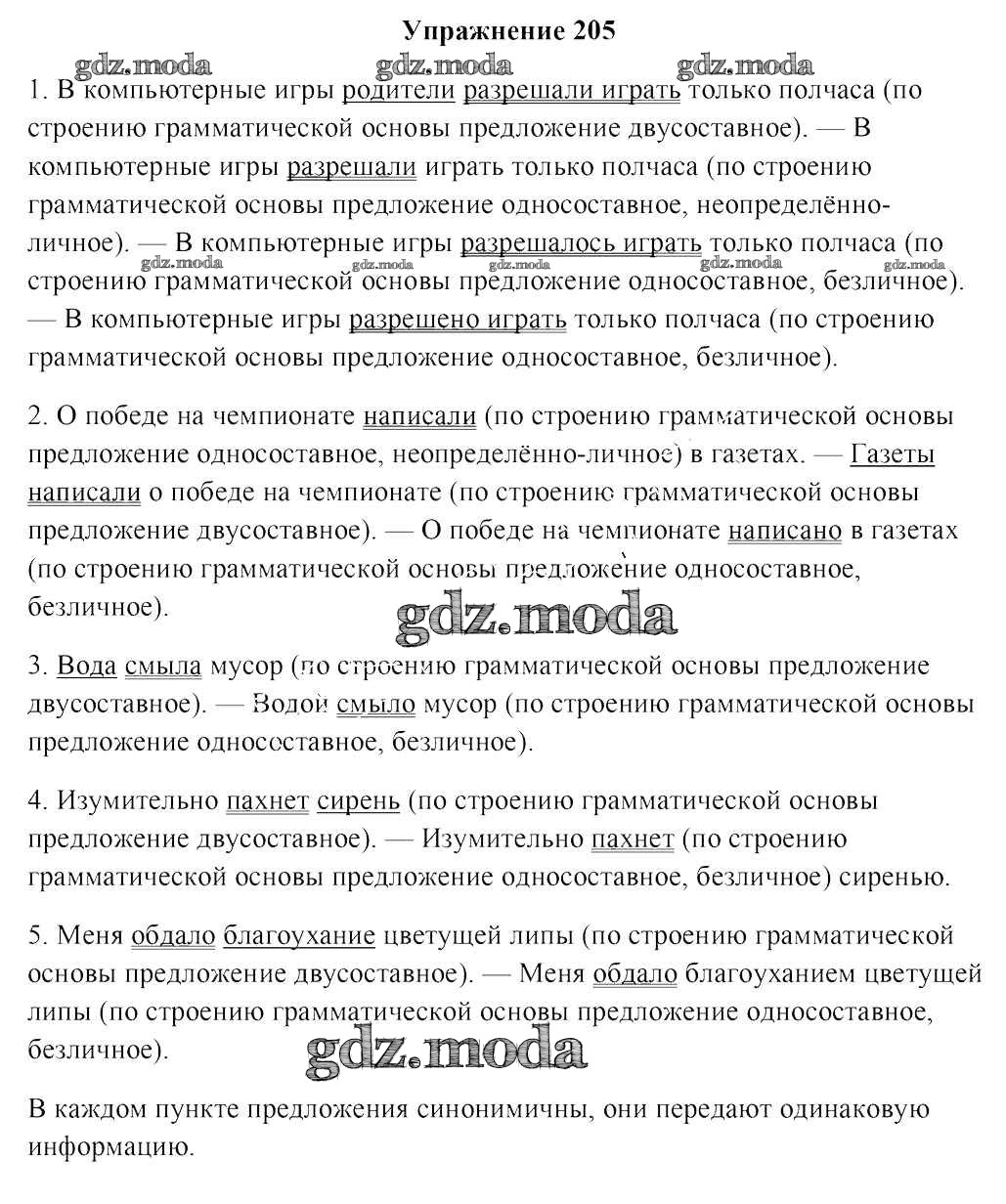 ГДЗ решение к заданию № 205 Русский язык 8 класс Мурина Л.A Национальный институт образования 2018 ФГОС бесплатно на гдз.мода!