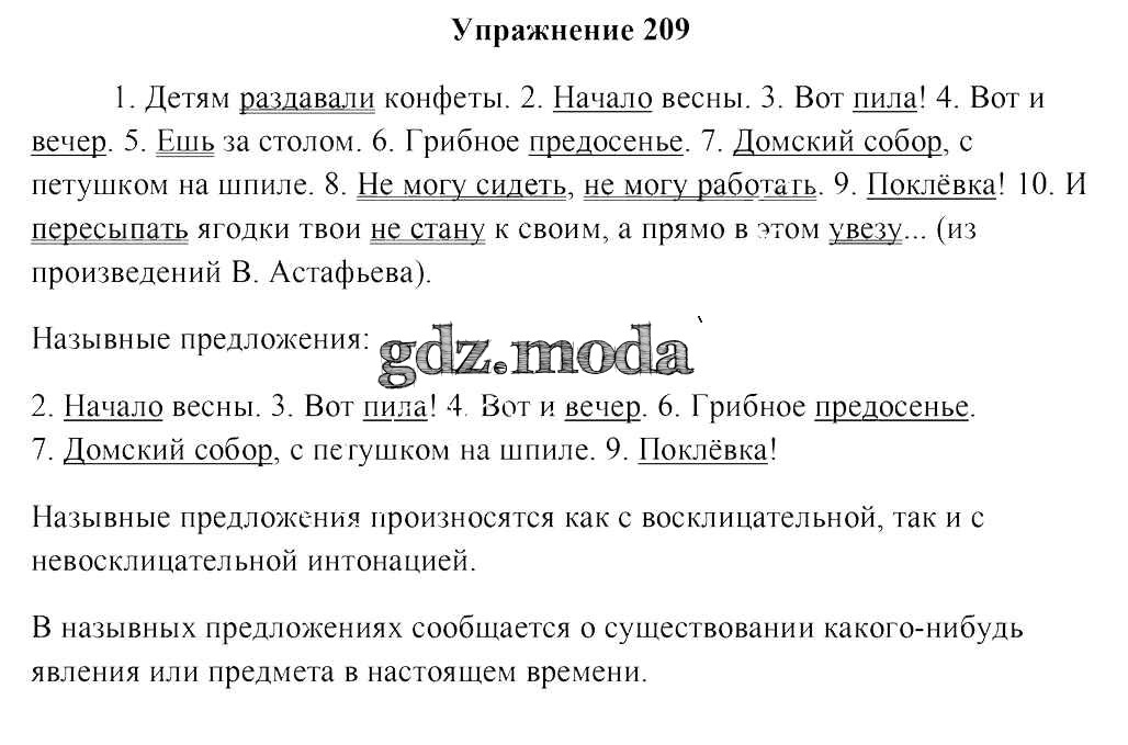 ГДЗ решение к заданию № 209 Русский язык 8 класс Мурина Л.A Национальный институт образования 2018 ФГОС бесплатно на гдз.мода!