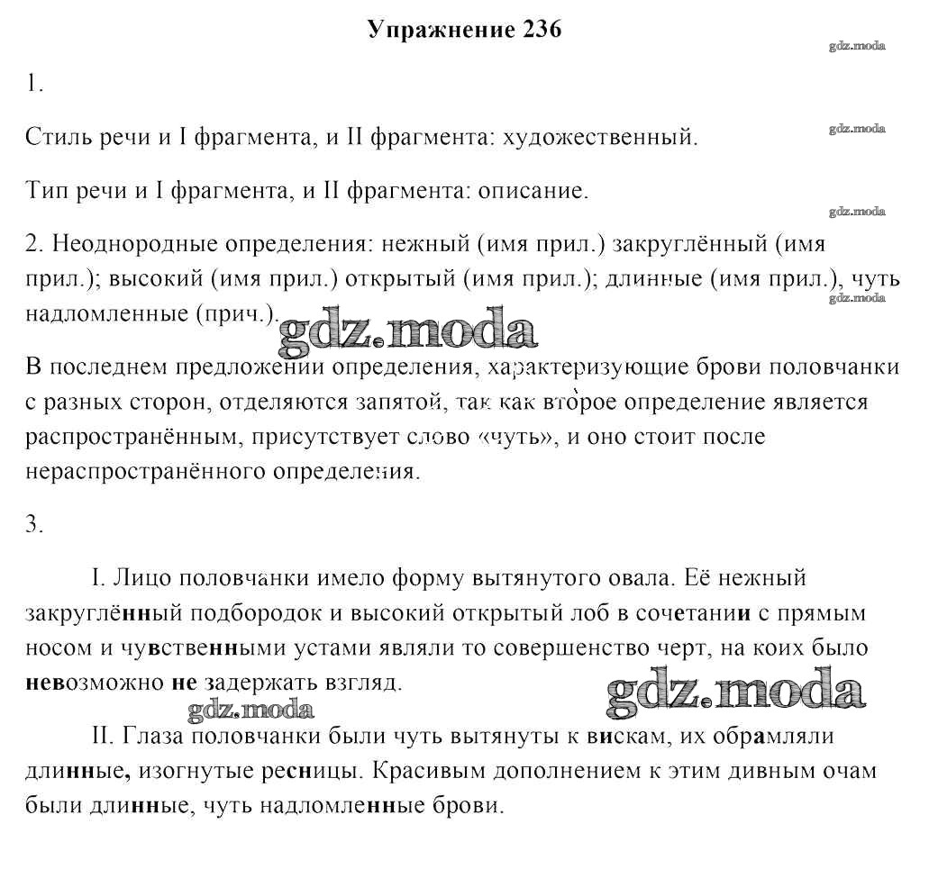 ОТВЕТ на задание № 236 Учебник по Русскому языку 8 класс Мурина