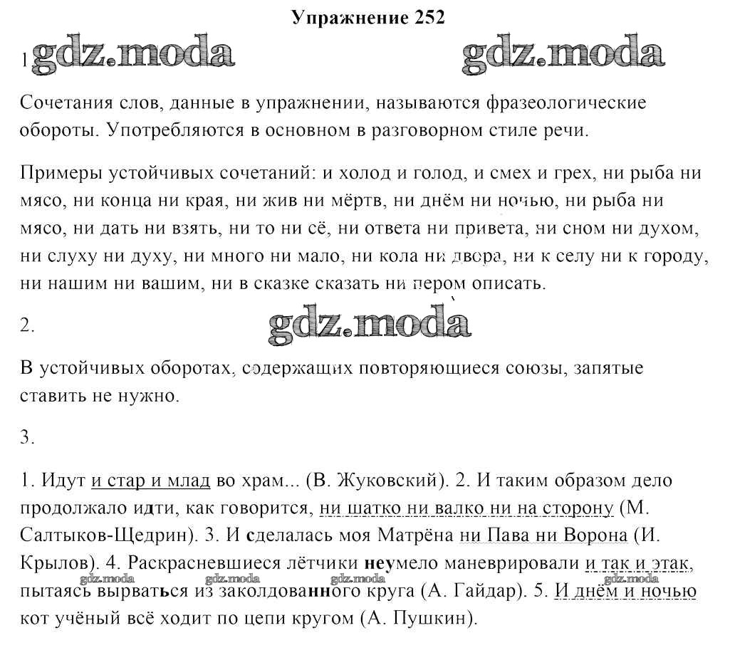 ОТВЕТ на задание № 252 Учебник по Русскому языку 8 класс Мурина
