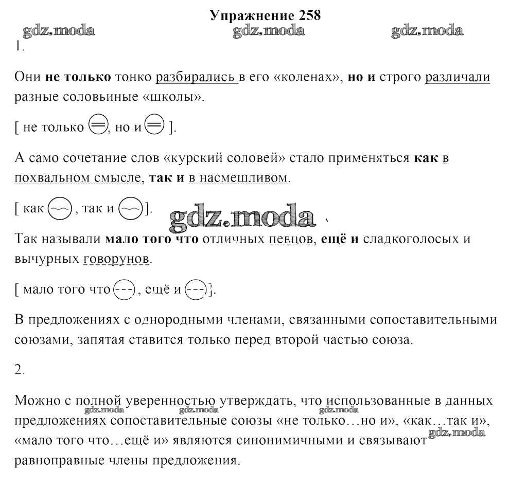 ОТВЕТ на задание № 258 Учебник по Русскому языку 8 класс Мурина