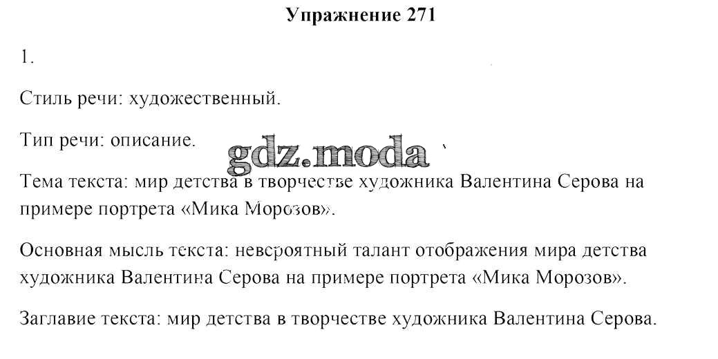 ОТВЕТ на задание № 271 Учебник по Русскому языку 8 класс Мурина