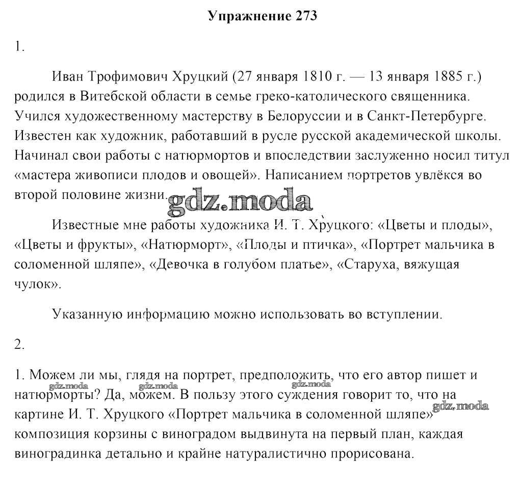 ОТВЕТ на задание № 273 Учебник по Русскому языку 8 класс Мурина