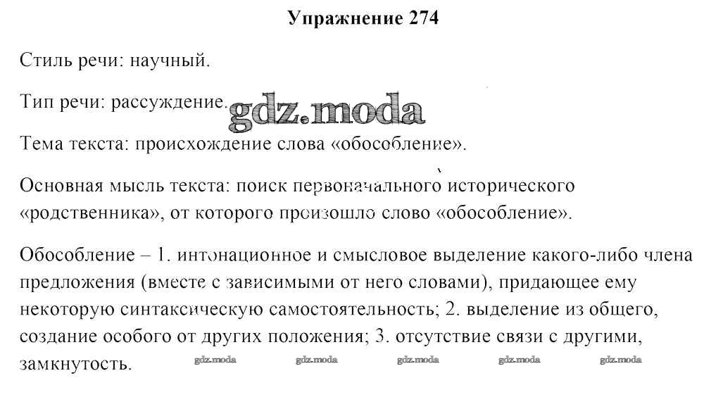ОТВЕТ на задание № 274 Учебник по Русскому языку 8 класс Мурина