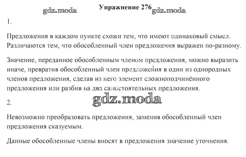 ОТВЕТ на задание № 276 Учебник по Русскому языку 8 класс Мурина