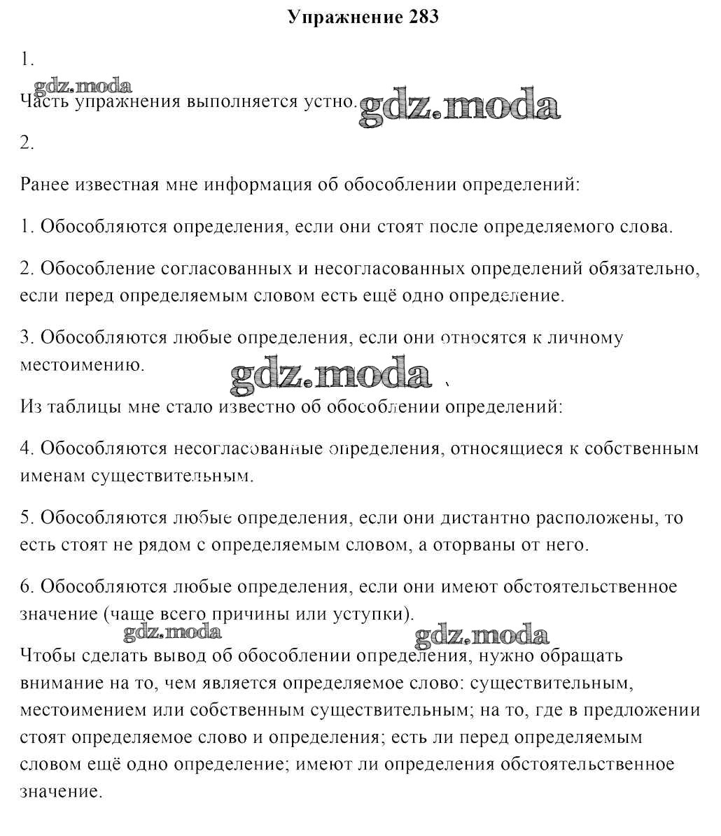 ГДЗ решение к заданию № 283 Русский язык 8 класс Мурина Л.A Национальный институт образования 2018 ФГОС бесплатно на гдз.мода!