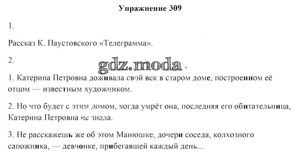ОТВЕТ на задание № 309 Учебник по Русскому языку 8 класс Мурина