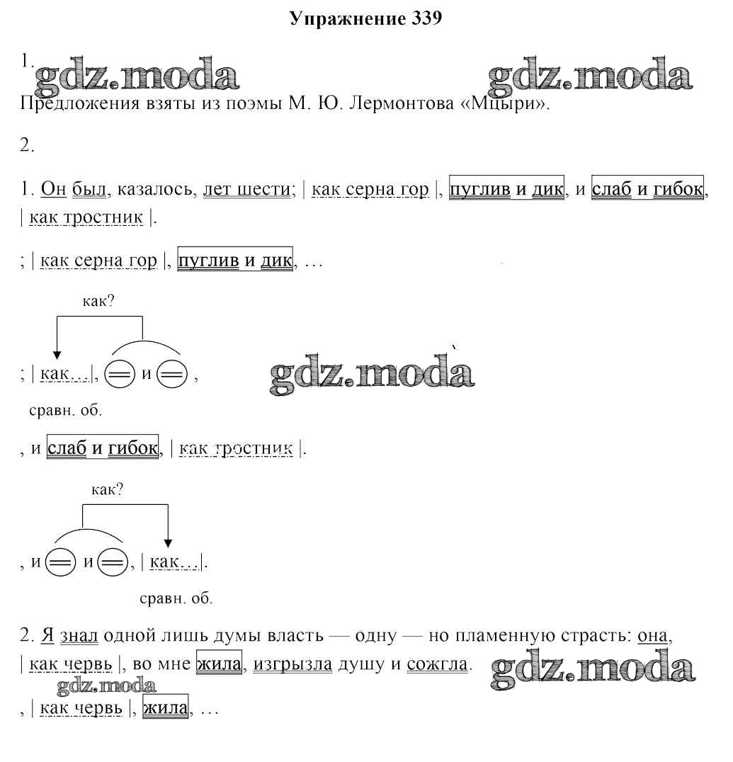 ОТВЕТ на задание № 339 Учебник по Русскому языку 8 класс Мурина