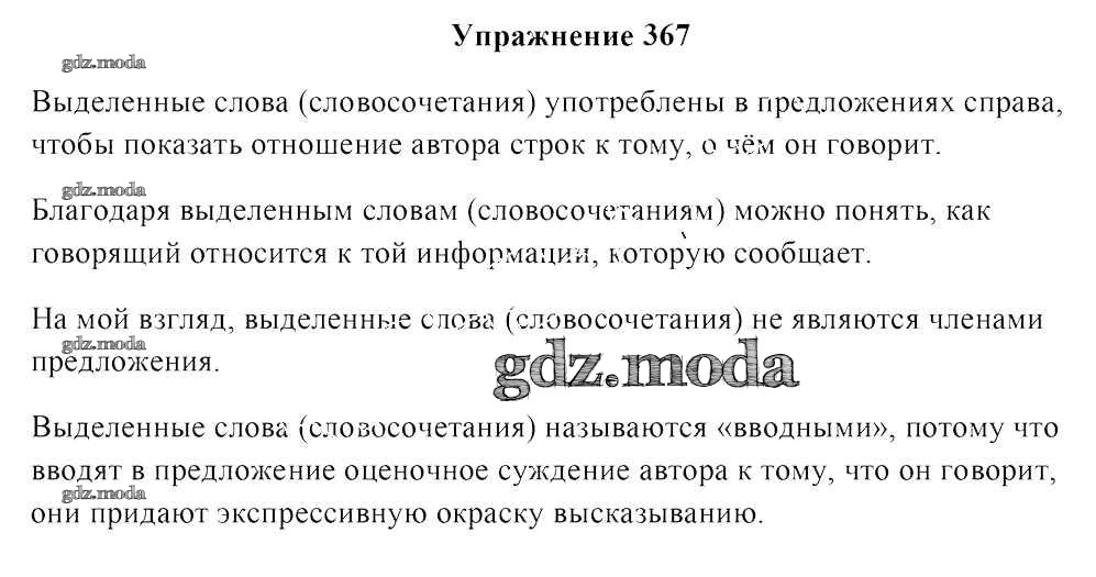 ОТВЕТ на задание № 367 Учебник по Русскому языку 8 класс Мурина