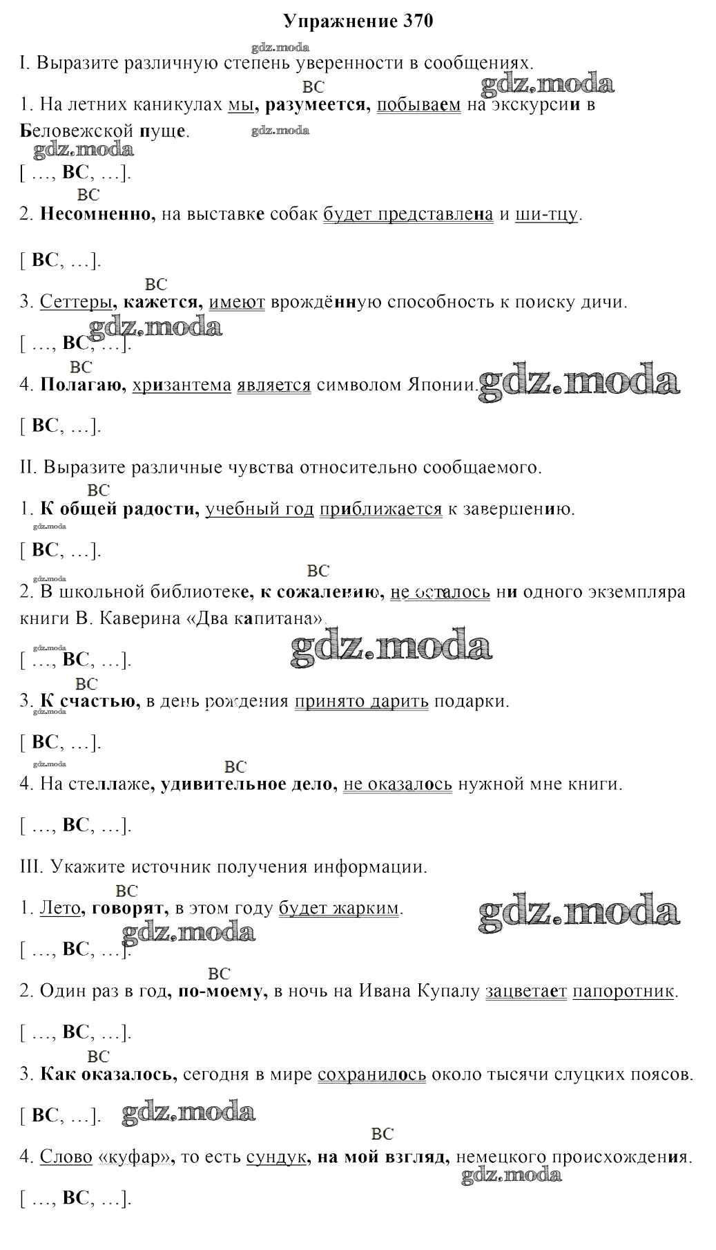 ГДЗ решение к заданию № 370 Русский язык 8 класс Мурина Л.A Национальный институт образования 2018 ФГОС бесплатно на гдз.мода!