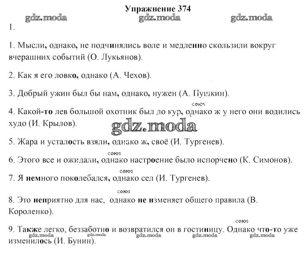 ОТВЕТ на задание № 374 Учебник по Русскому языку 8 класс Мурина
