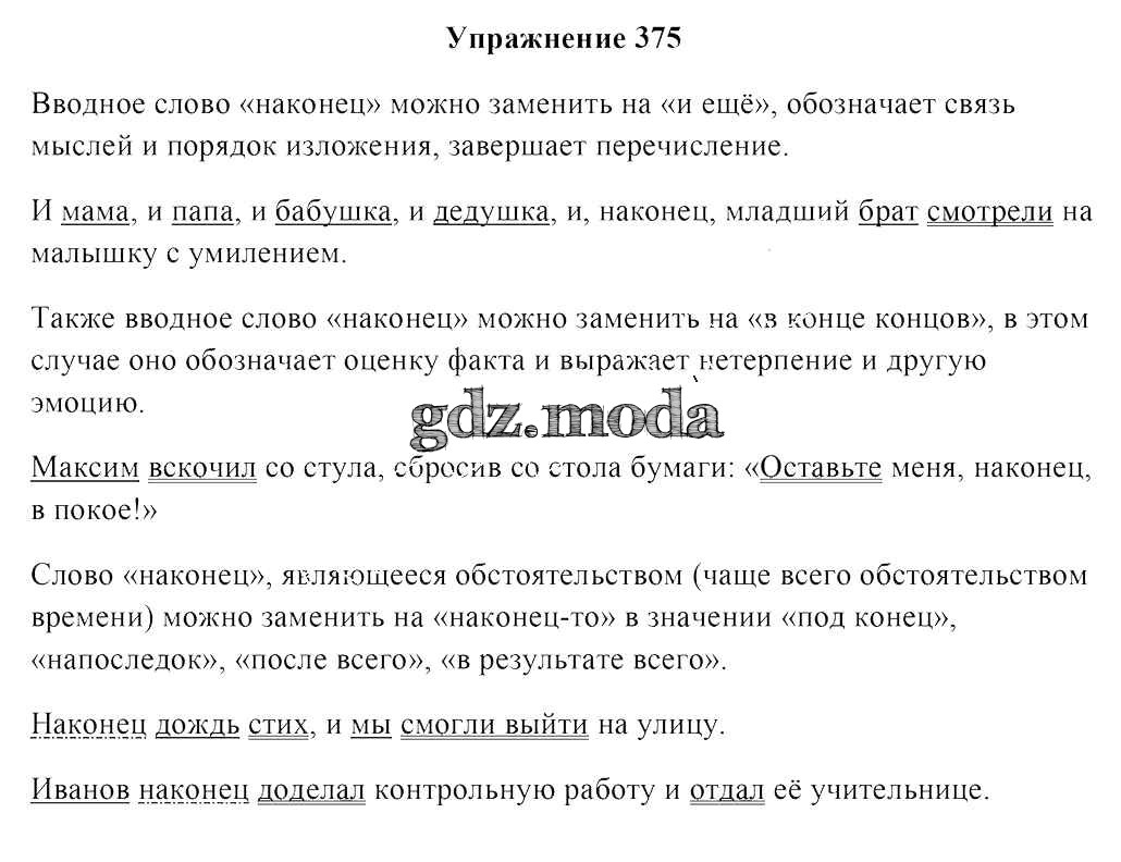 ОТВЕТ на задание № 375 Учебник по Русскому языку 8 класс Мурина