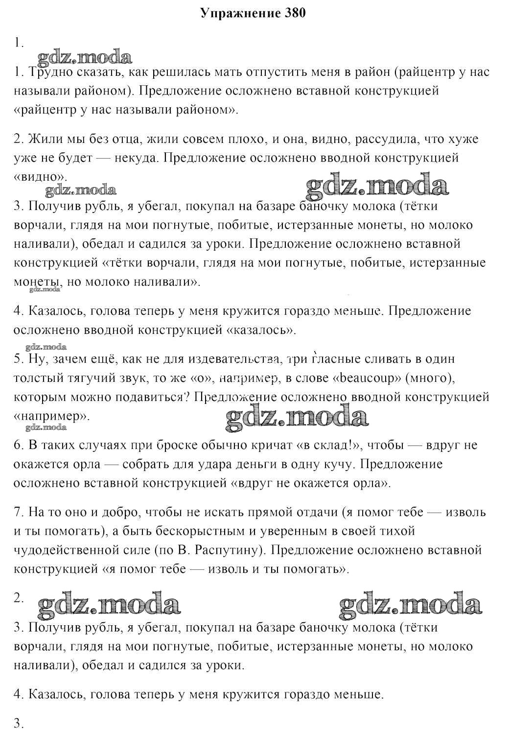 ОТВЕТ на задание № 380 Учебник по Русскому языку 8 класс Мурина