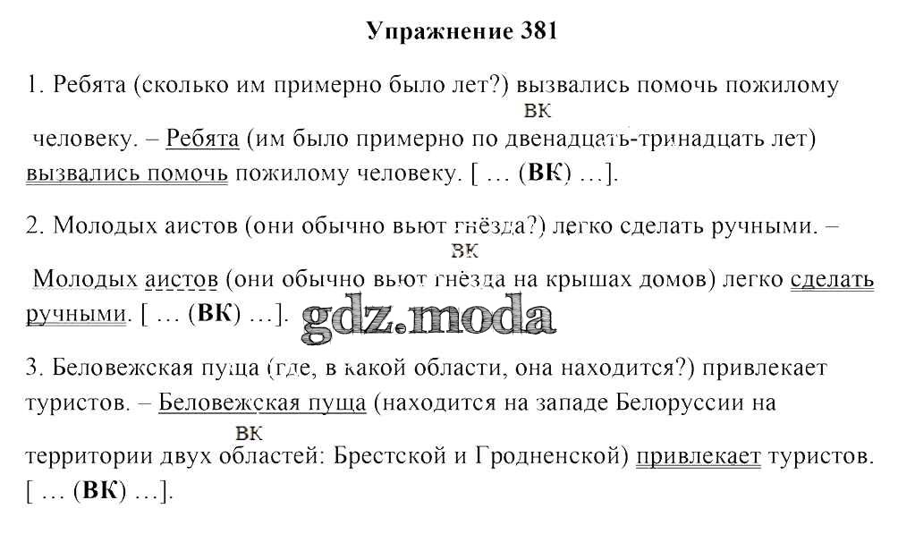 ГДЗ решение к заданию № 381 Русский язык 8 класс Мурина Л.A Национальный институт образования 2018 ФГОС бесплатно на гдз.мода!