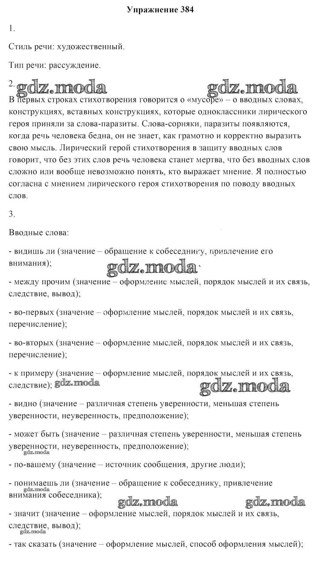 ОТВЕТ на задание № 384 Учебник по Русскому языку 8 класс Мурина