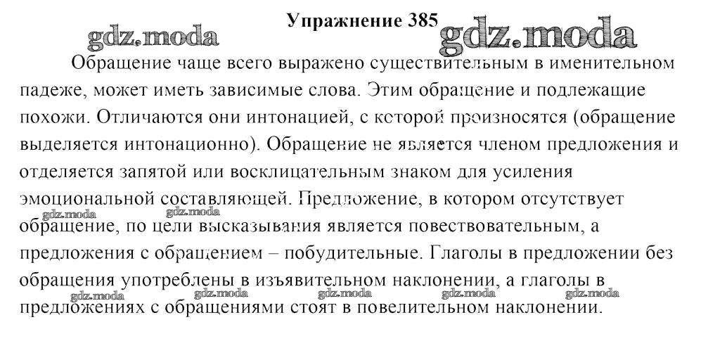 ОТВЕТ на задание № 385 Учебник по Русскому языку 8 класс Мурина