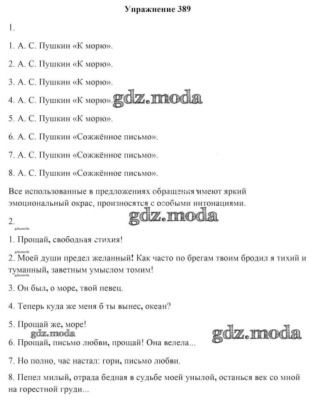 ГДЗ решение к заданию № 389 Русский язык 8 класс Мурина Л.A Национальный институт образования 2018 ФГОС бесплатно на гдз.мода!