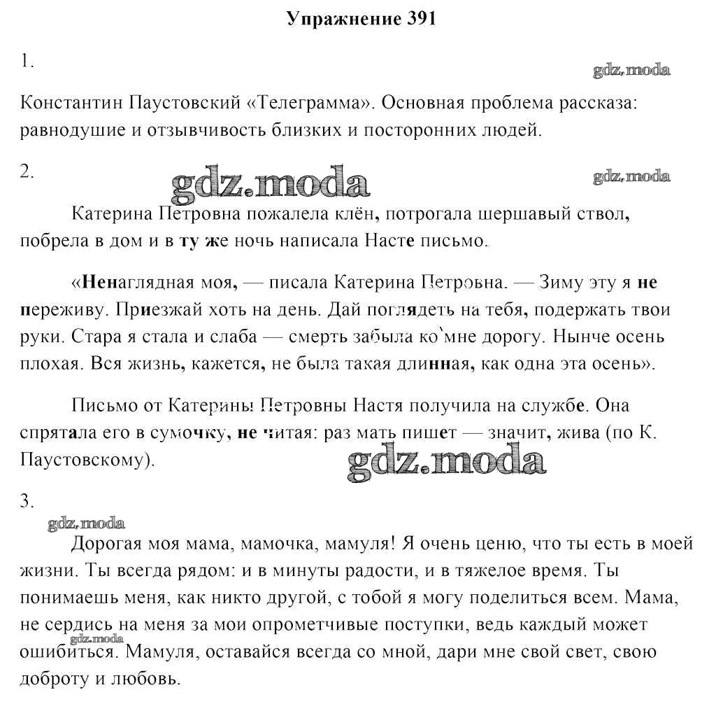 ОТВЕТ на задание № 391 Учебник по Русскому языку 8 класс Мурина