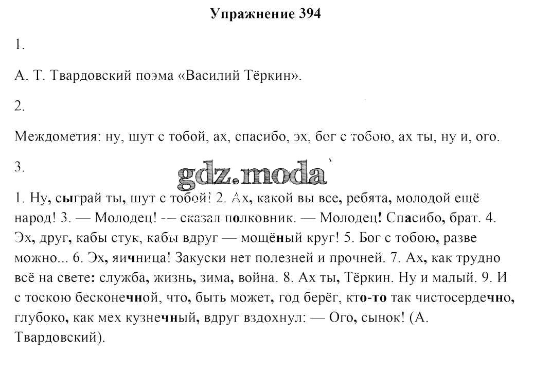 ОТВЕТ на задание № 394 Учебник по Русскому языку 8 класс Мурина
