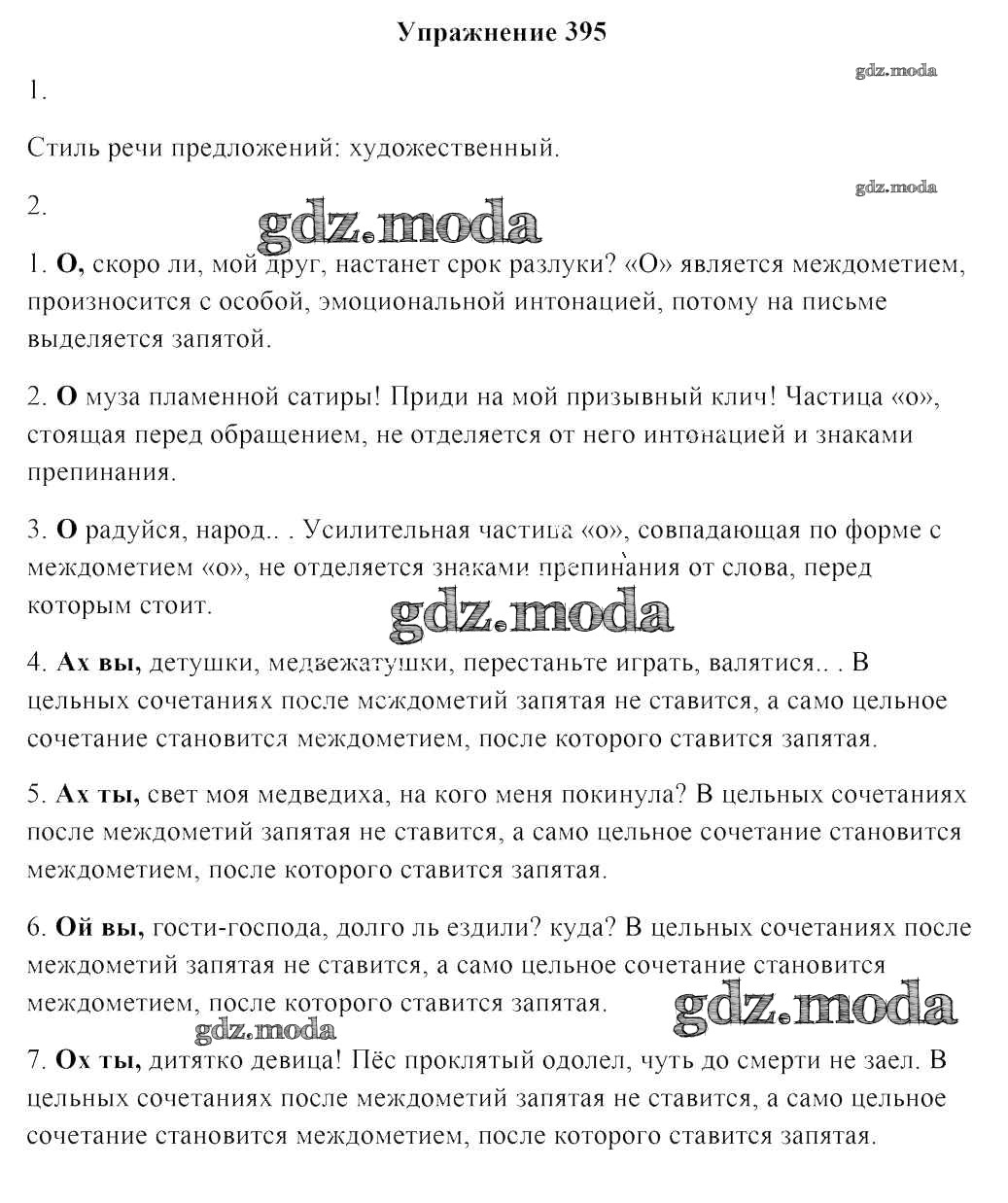 ОТВЕТ на задание № 395 Учебник по Русскому языку 8 класс Мурина