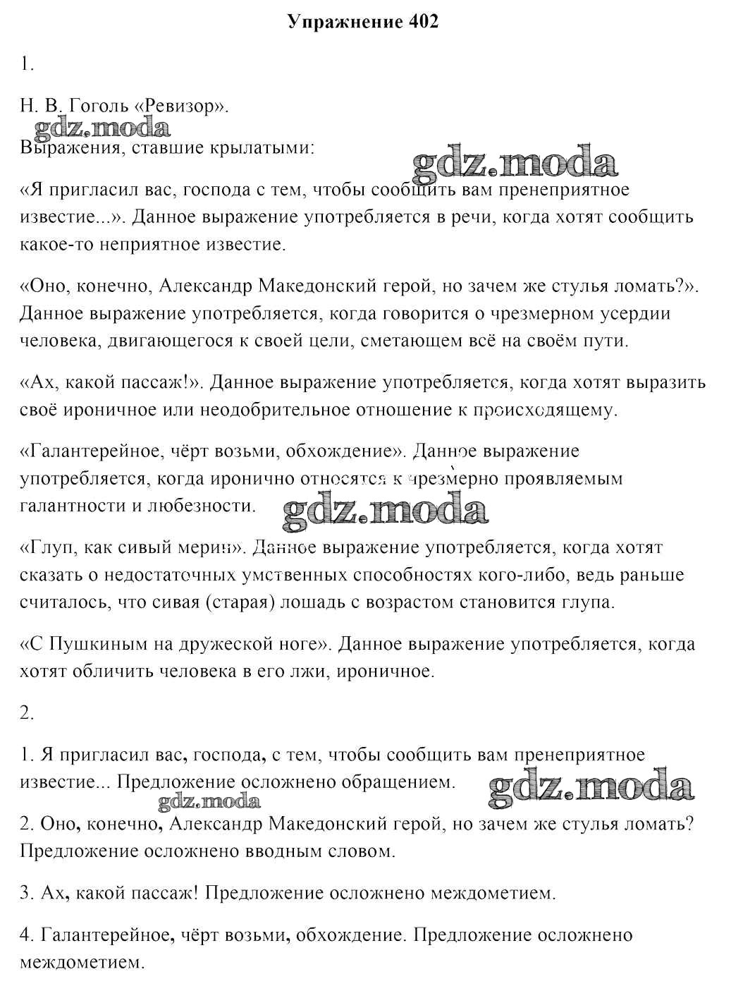 ОТВЕТ на задание № 402 Учебник по Русскому языку 8 класс Мурина