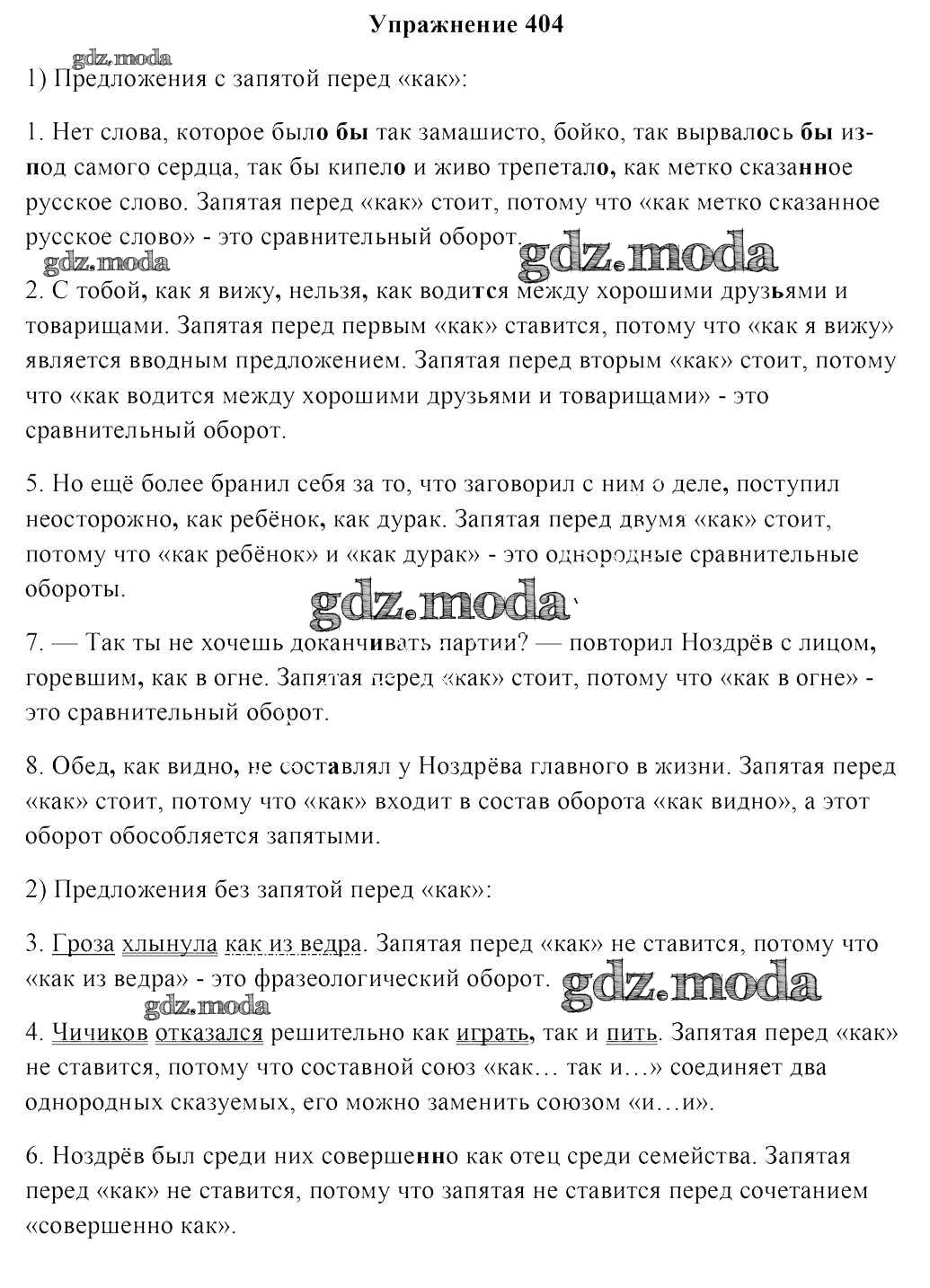 ОТВЕТ на задание № 404 Учебник по Русскому языку 8 класс Мурина
