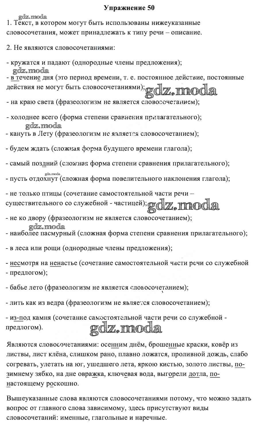 ОТВЕТ на задание № 50 Учебник по Русскому языку 8 класс Мурина