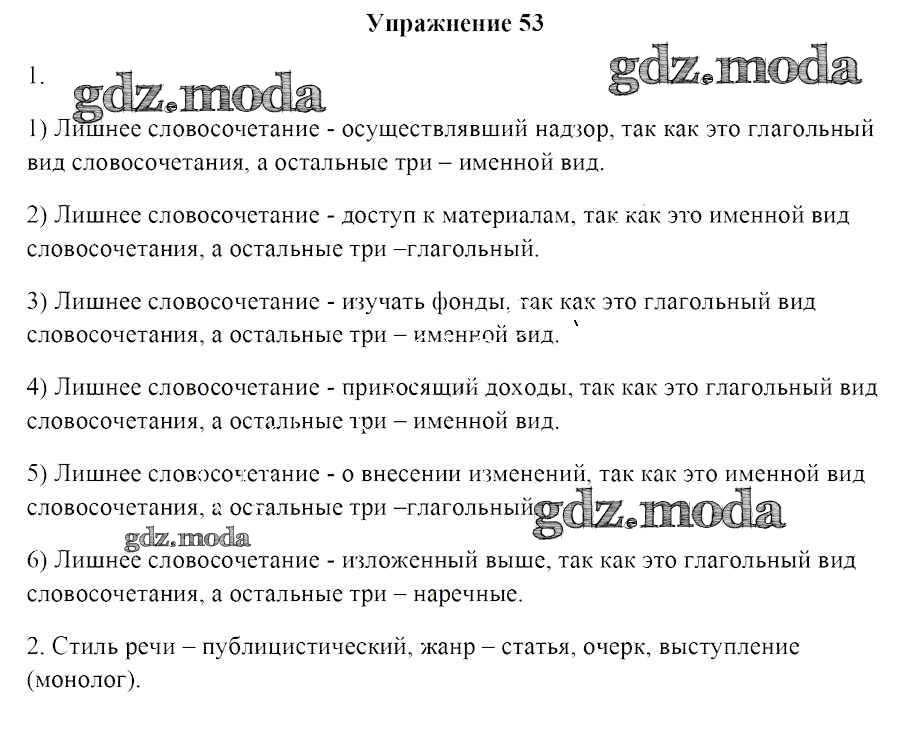 ОТВЕТ на задание № 53 Учебник по Русскому языку 8 класс Мурина