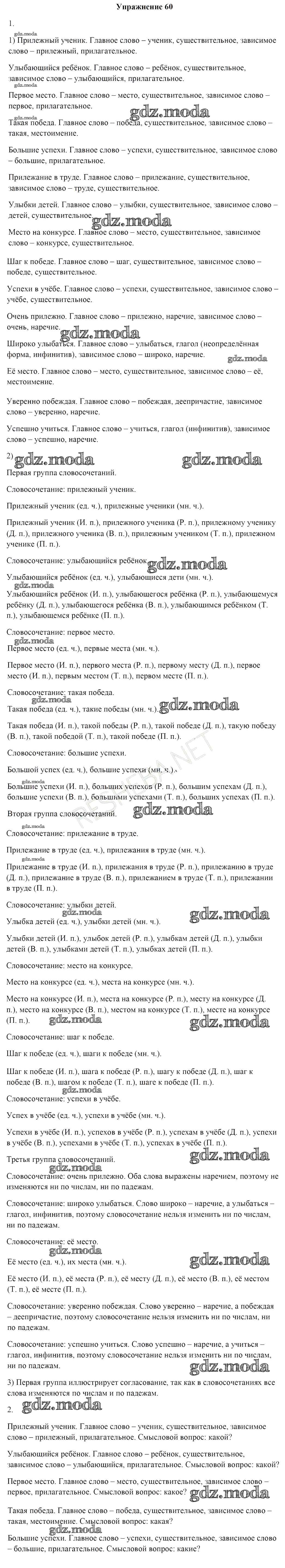 ОТВЕТ на задание № 60 Учебник по Русскому языку 8 класс Мурина