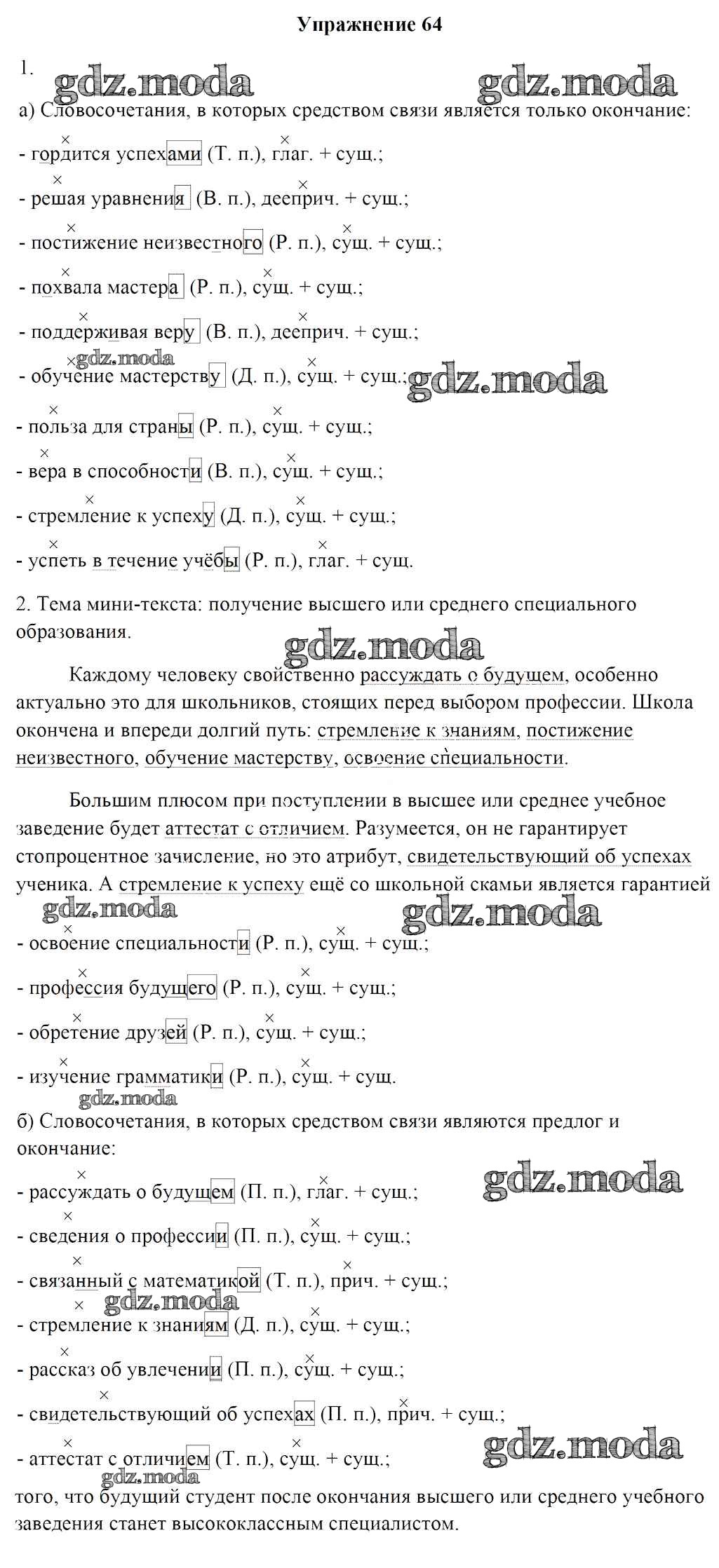 ГДЗ решение к заданию № 64 Русский язык 8 класс Мурина Л.A Национальный институт образования 2018 ФГОС бесплатно на гдз.мода!