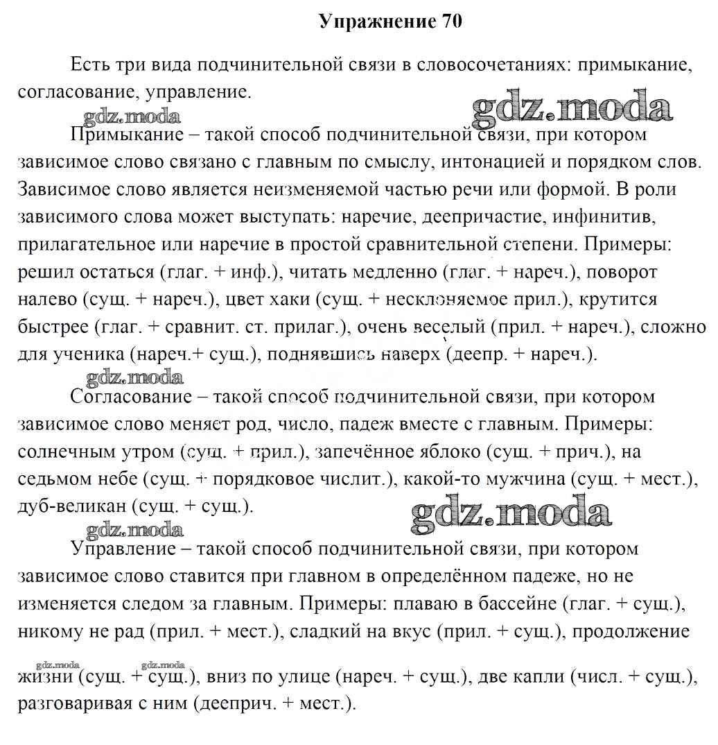 ГДЗ решение к заданию № 70 Русский язык 8 класс Мурина Л.A Национальный институт образования 2018 ФГОС бесплатно на гдз.мода!