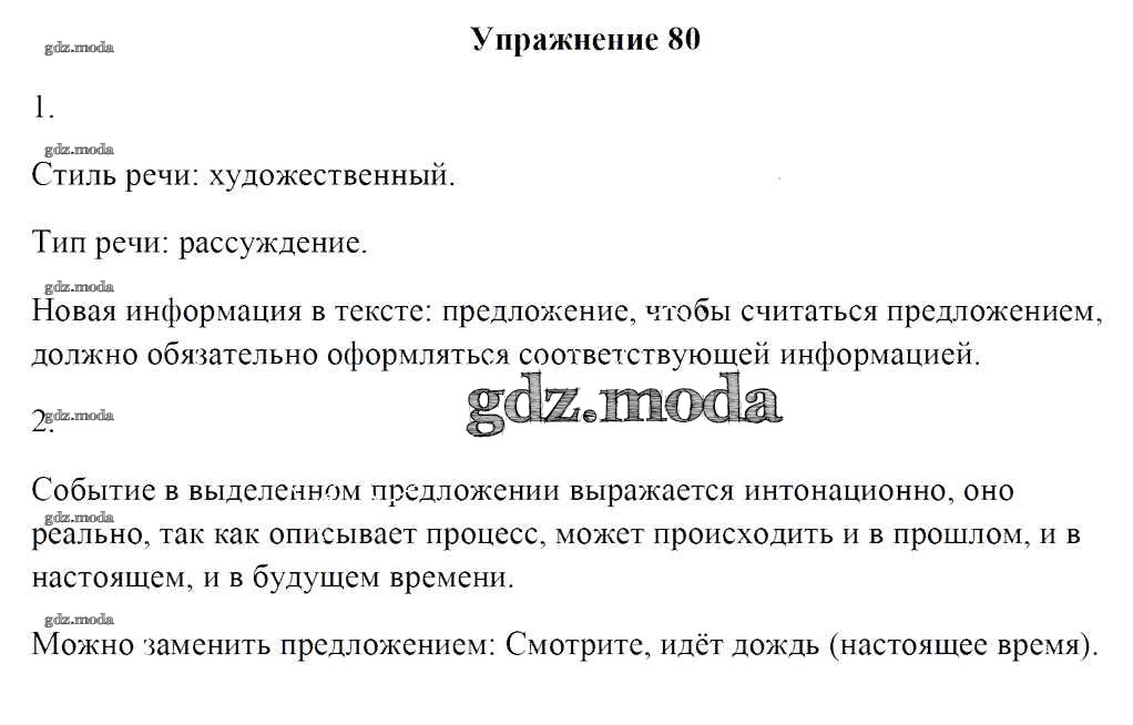 ОТВЕТ на задание № 80 Учебник по Русскому языку 8 класс Мурина