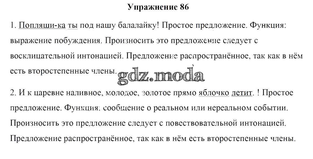 ОТВЕТ на задание № 86 Учебник по Русскому языку 8 класс Мурина