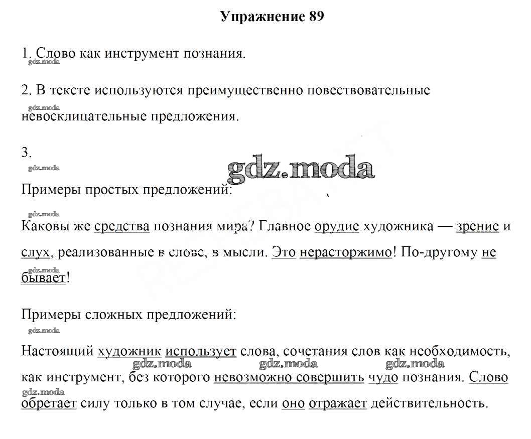 ОТВЕТ на задание № 89 Учебник по Русскому языку 8 класс Мурина