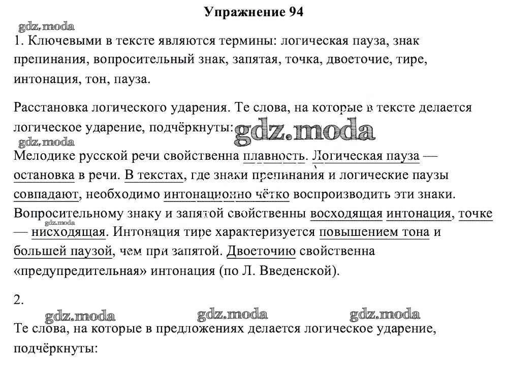 ОТВЕТ на задание № 94 Учебник по Русскому языку 8 класс Мурина