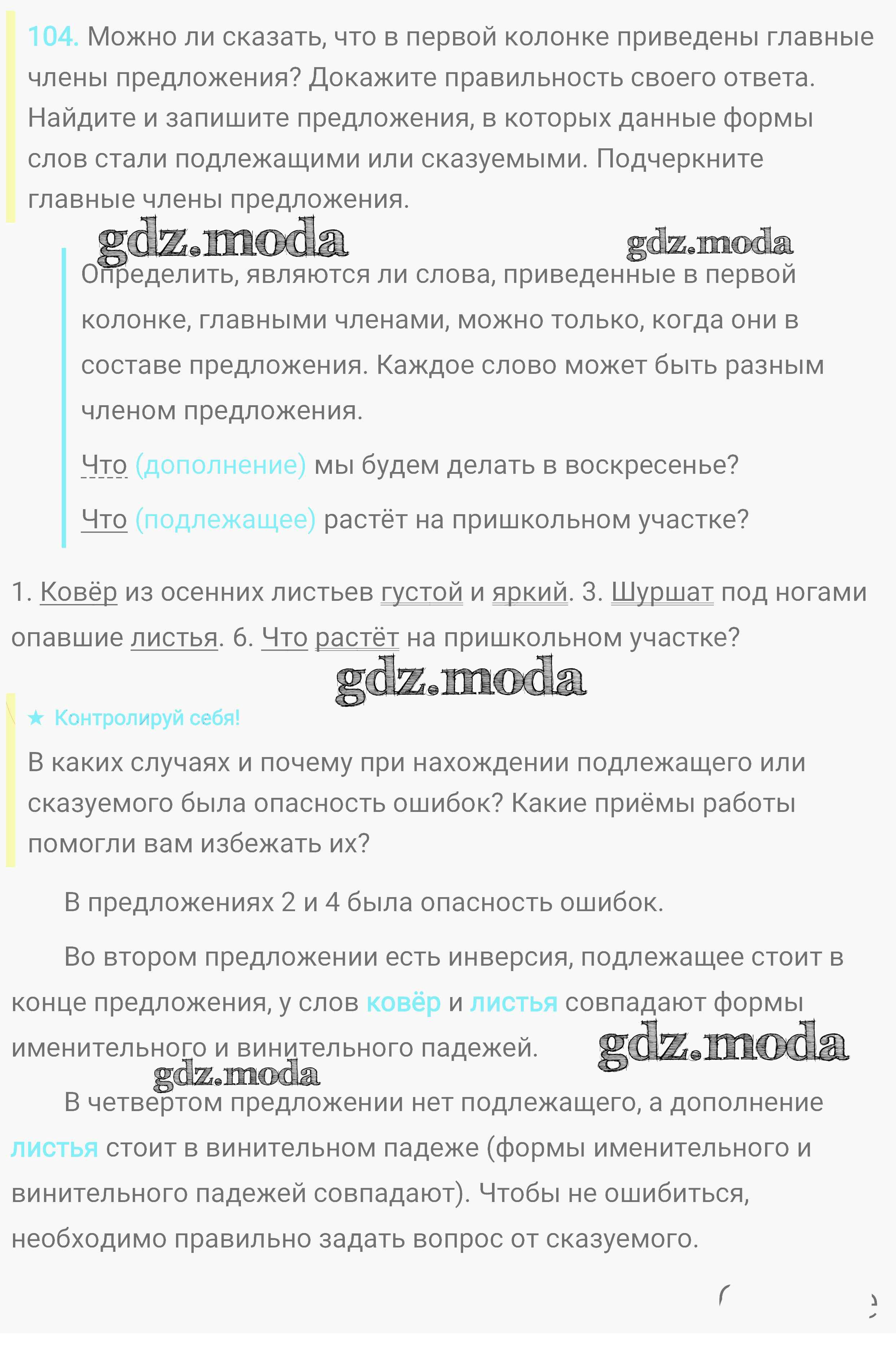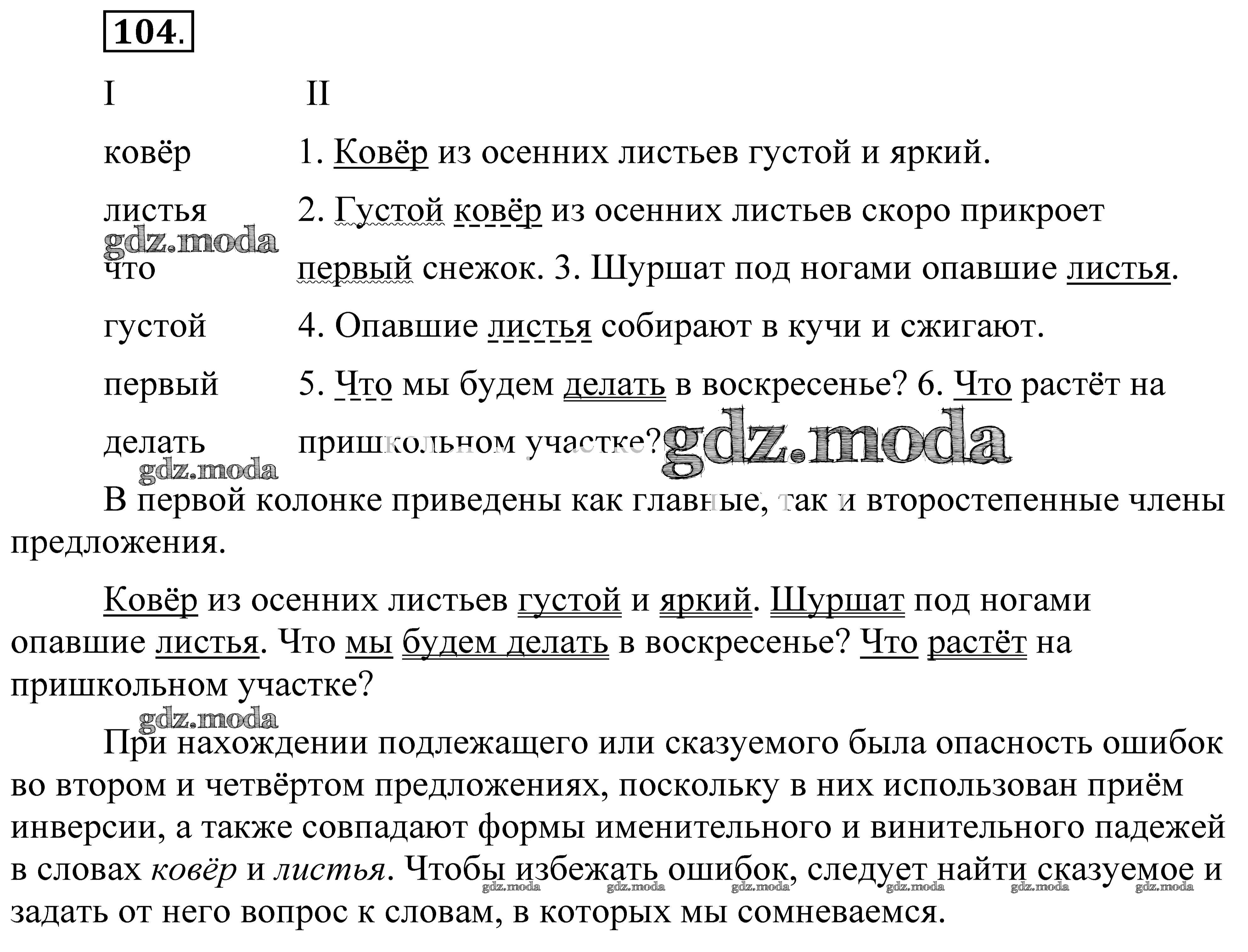 ОТВЕТ на задание № 104 Практика по Русскому языку 8 класс Пичугов Вертикаль