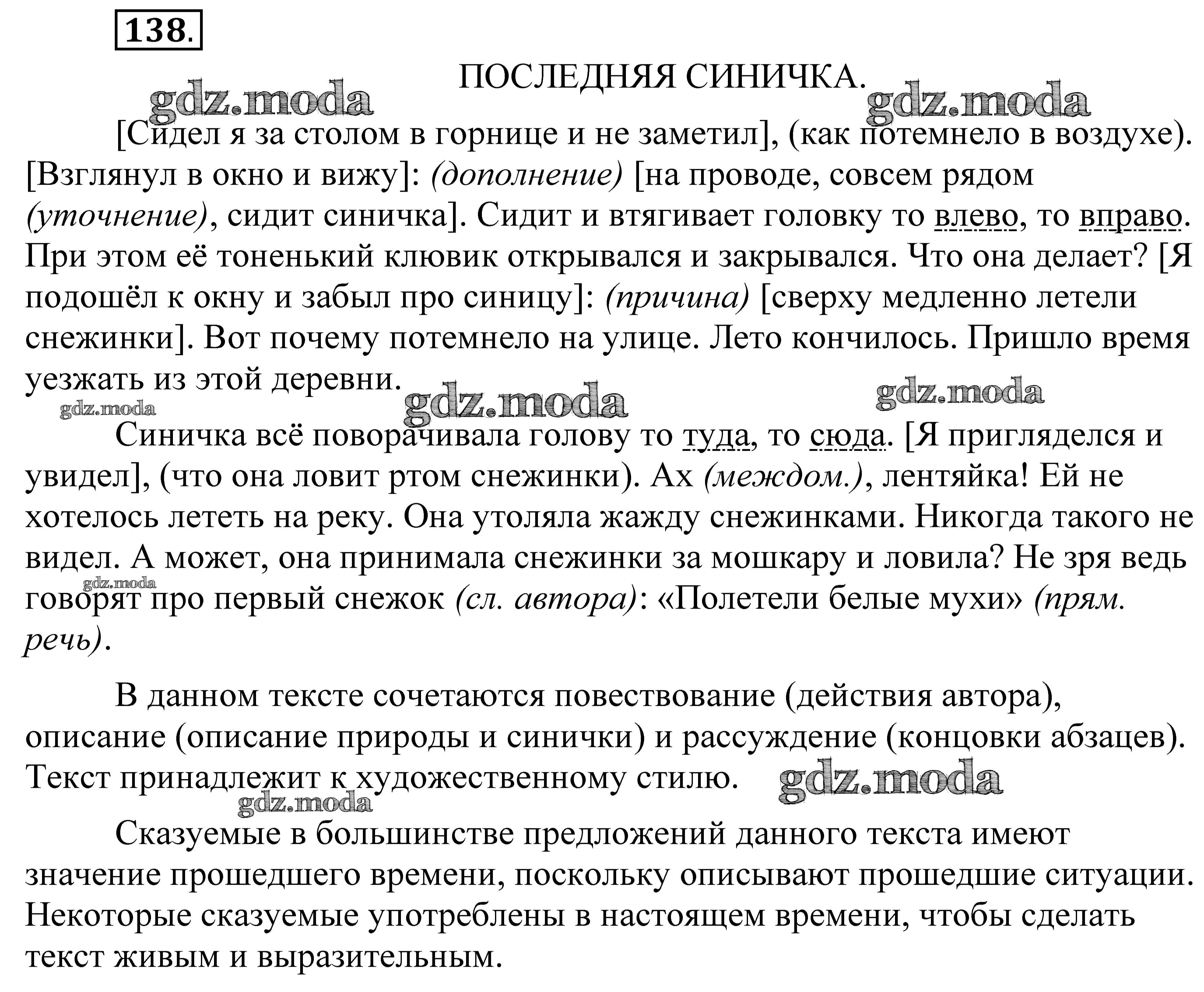 ОТВЕТ на задание № 138 Практика по Русскому языку 8 класс Пичугов Вертикаль