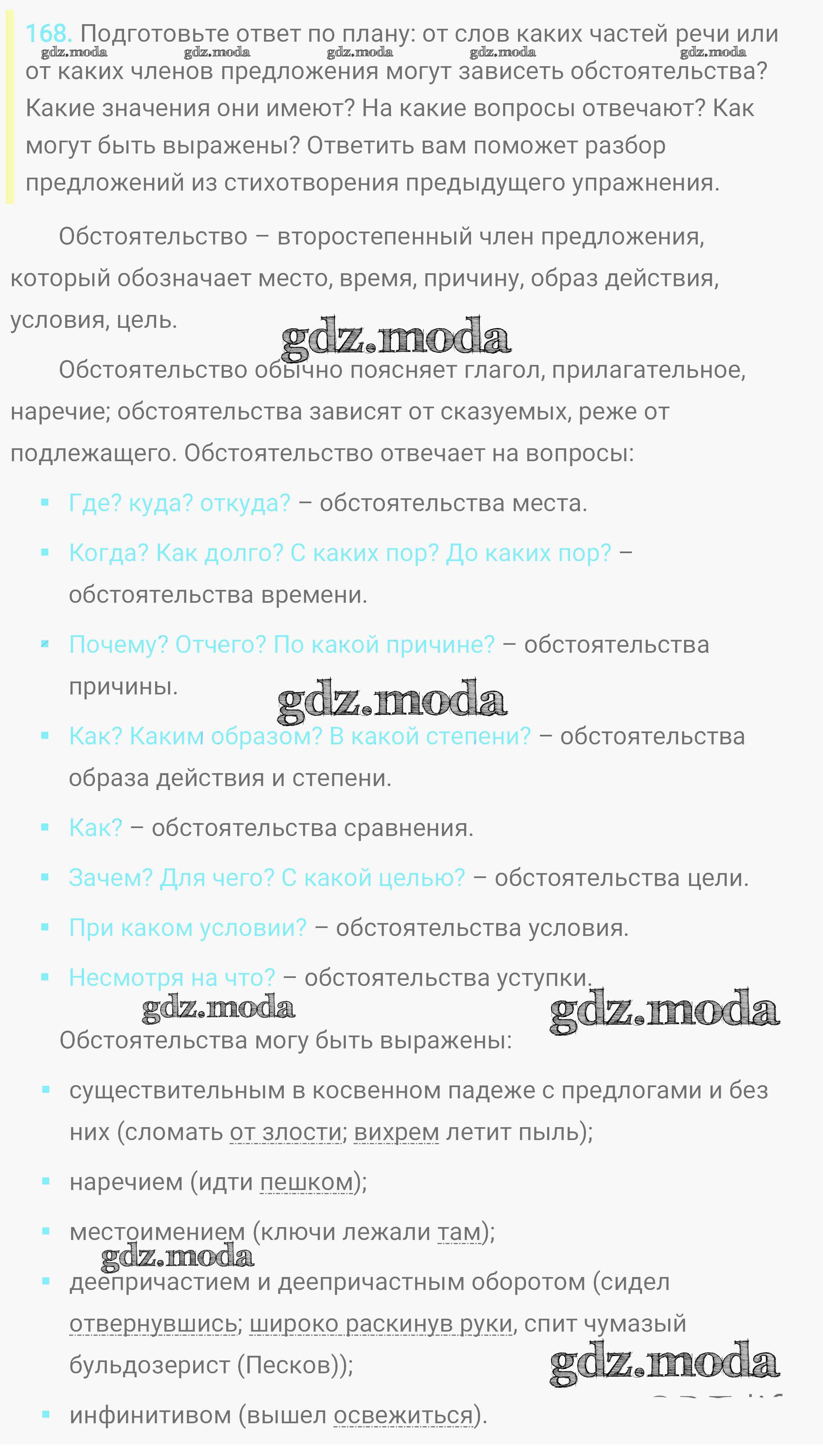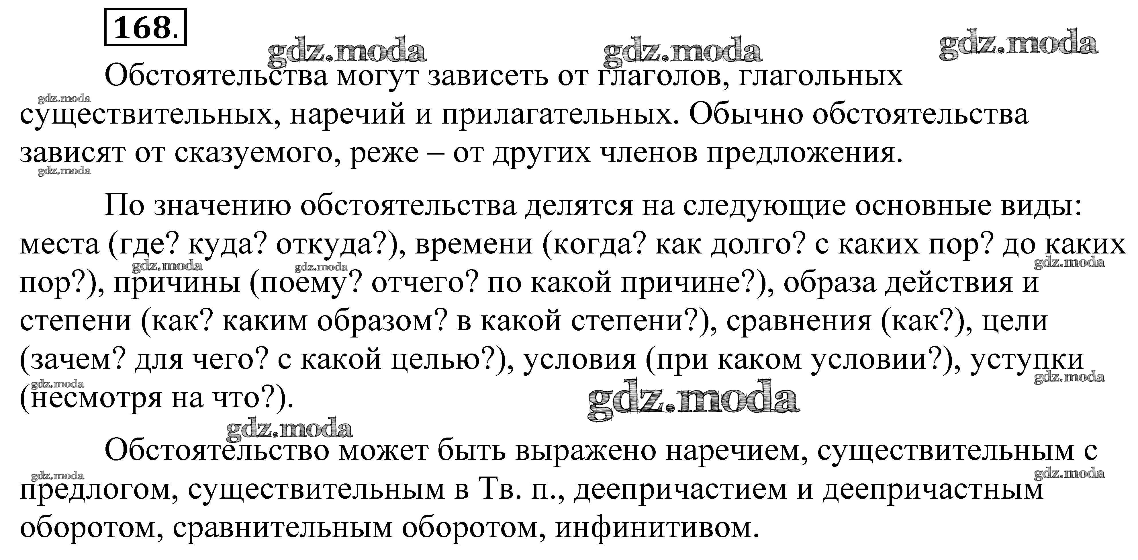 ОТВЕТ на задание № 168 Практика по Русскому языку 8 класс Пичугов Вертикаль