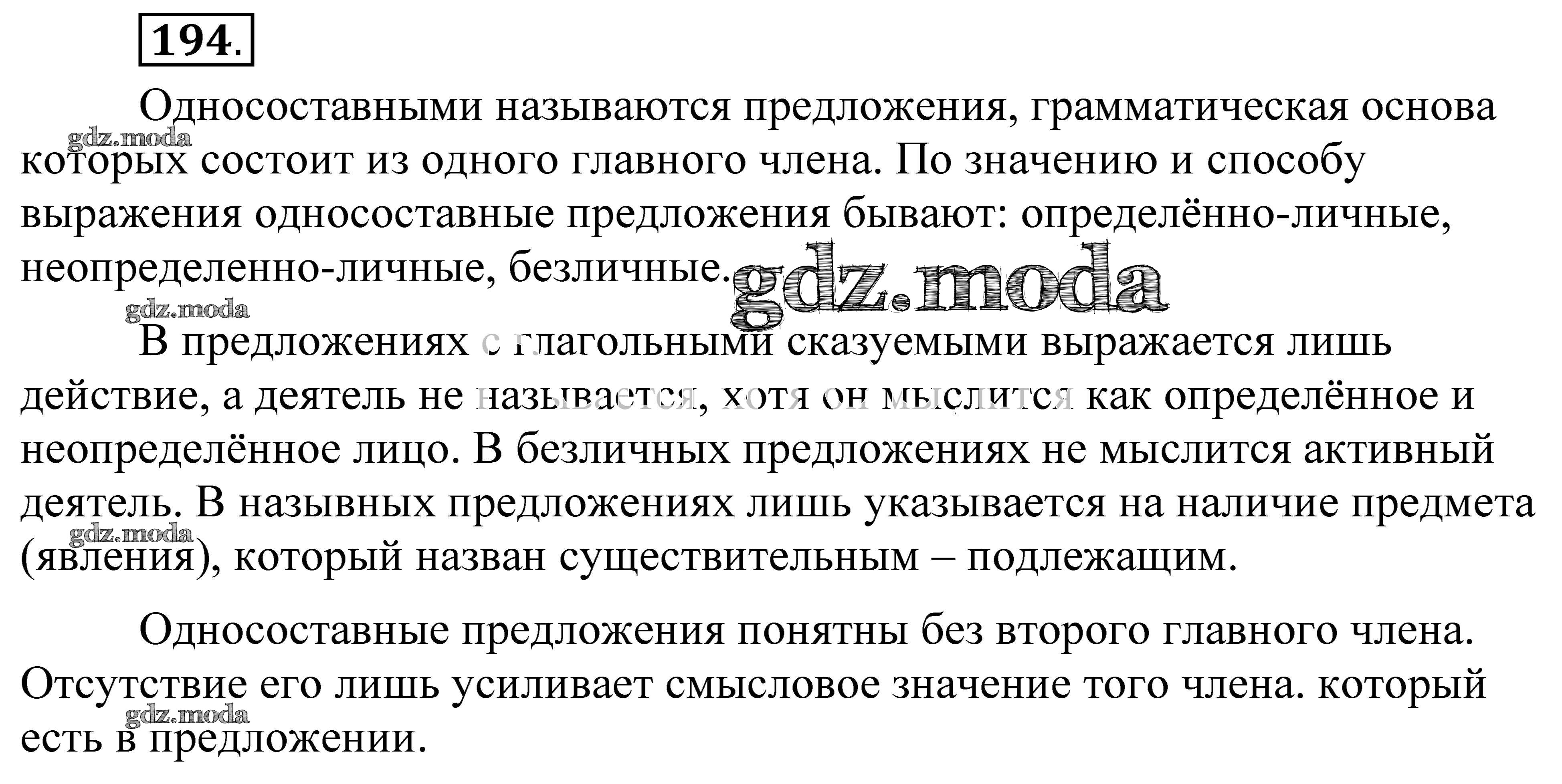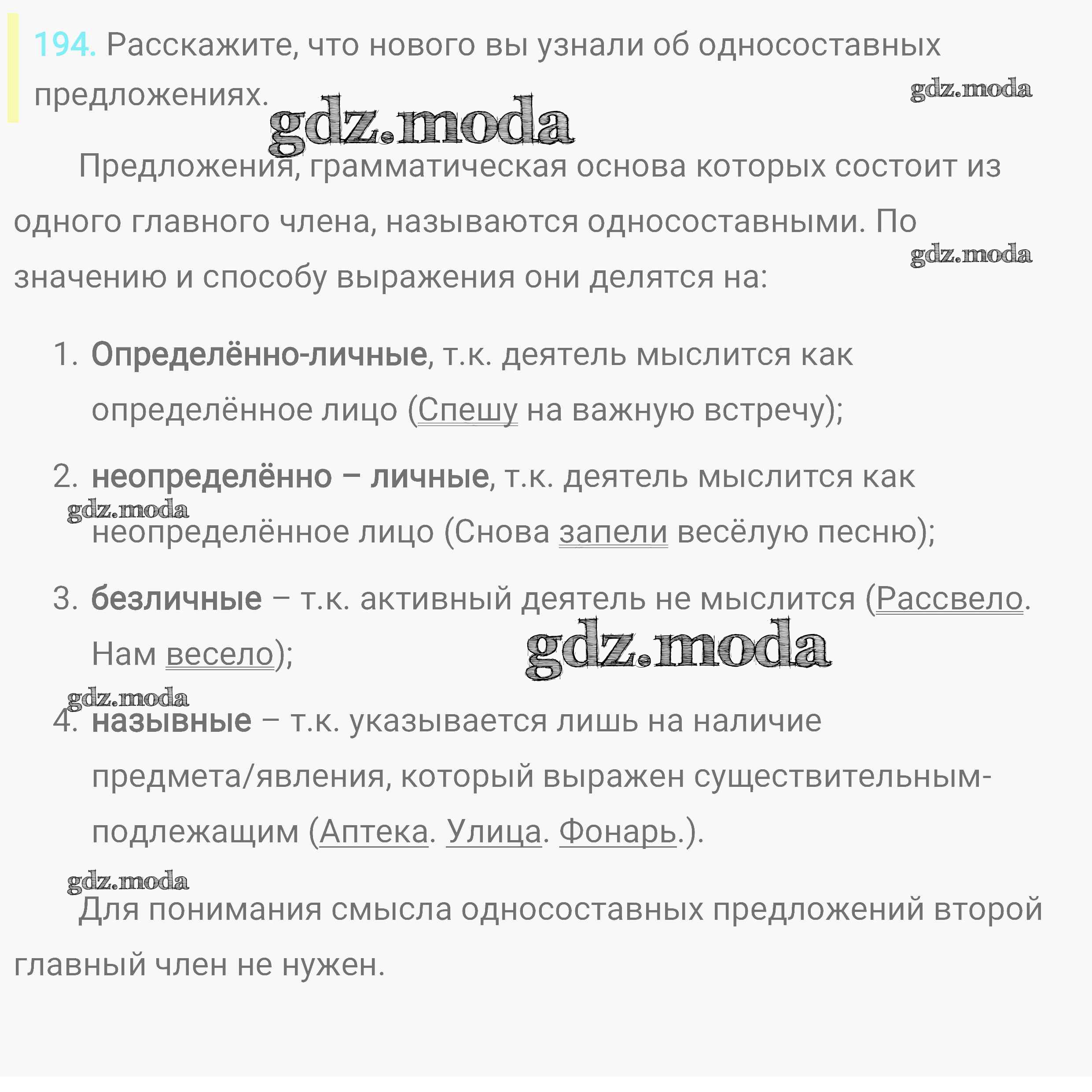 ОТВЕТ на задание № 194 Практика по Русскому языку 8 класс Пичугов Вертикаль