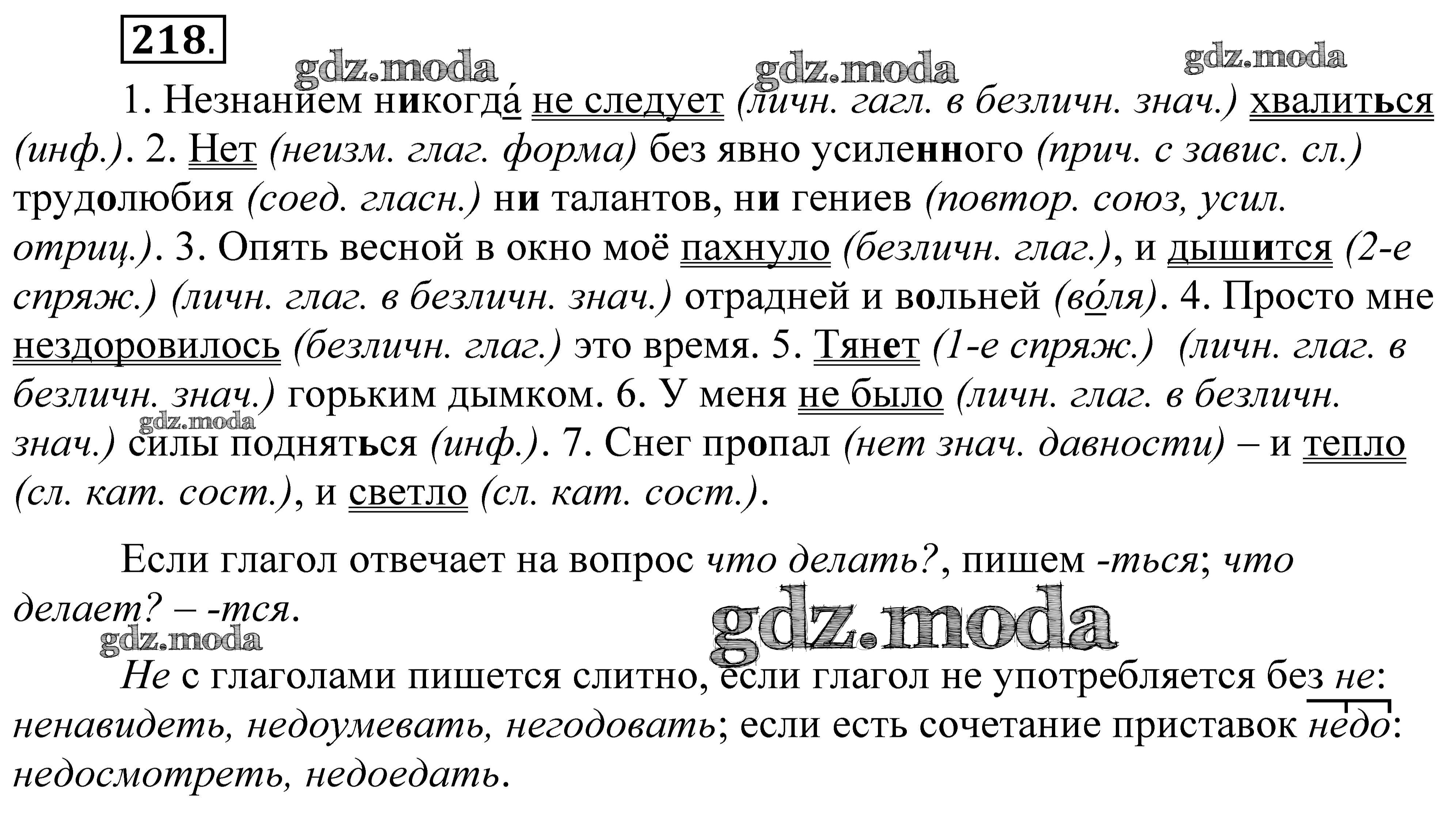 ОТВЕТ на задание № 218 Практика по Русскому языку 8 класс Пичугов Вертикаль