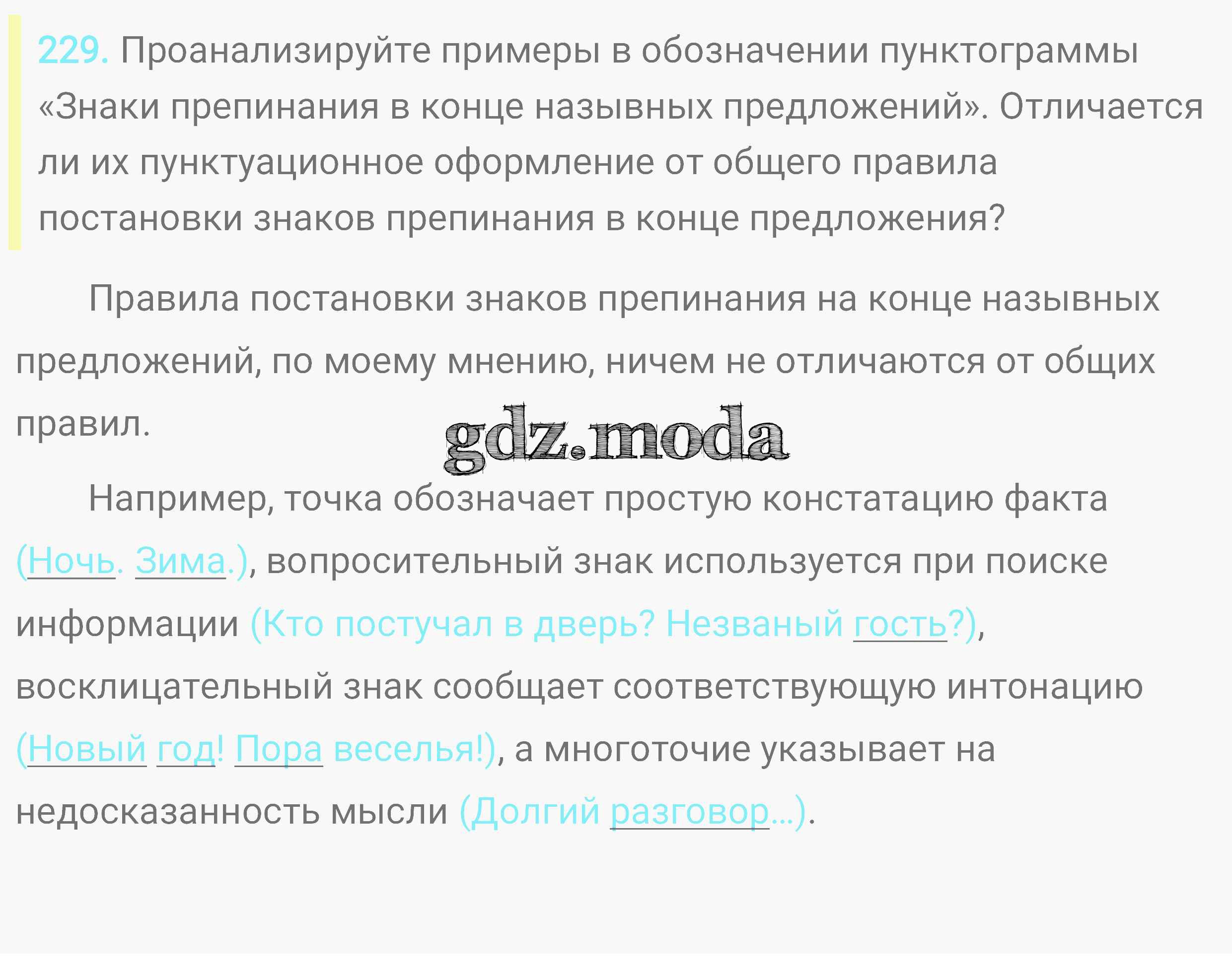 ОТВЕТ на задание № 229 Практика по Русскому языку 8 класс Пичугов Вертикаль