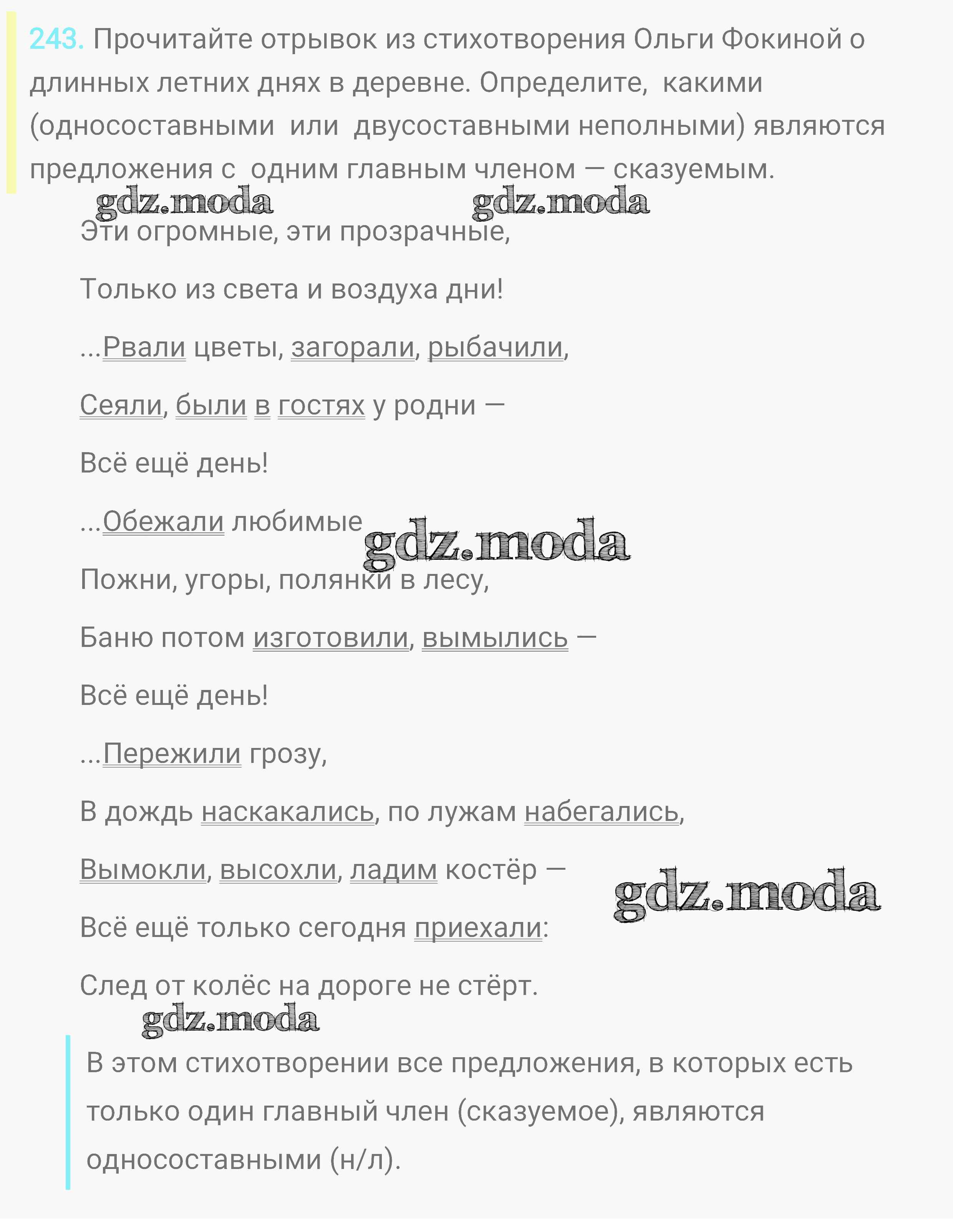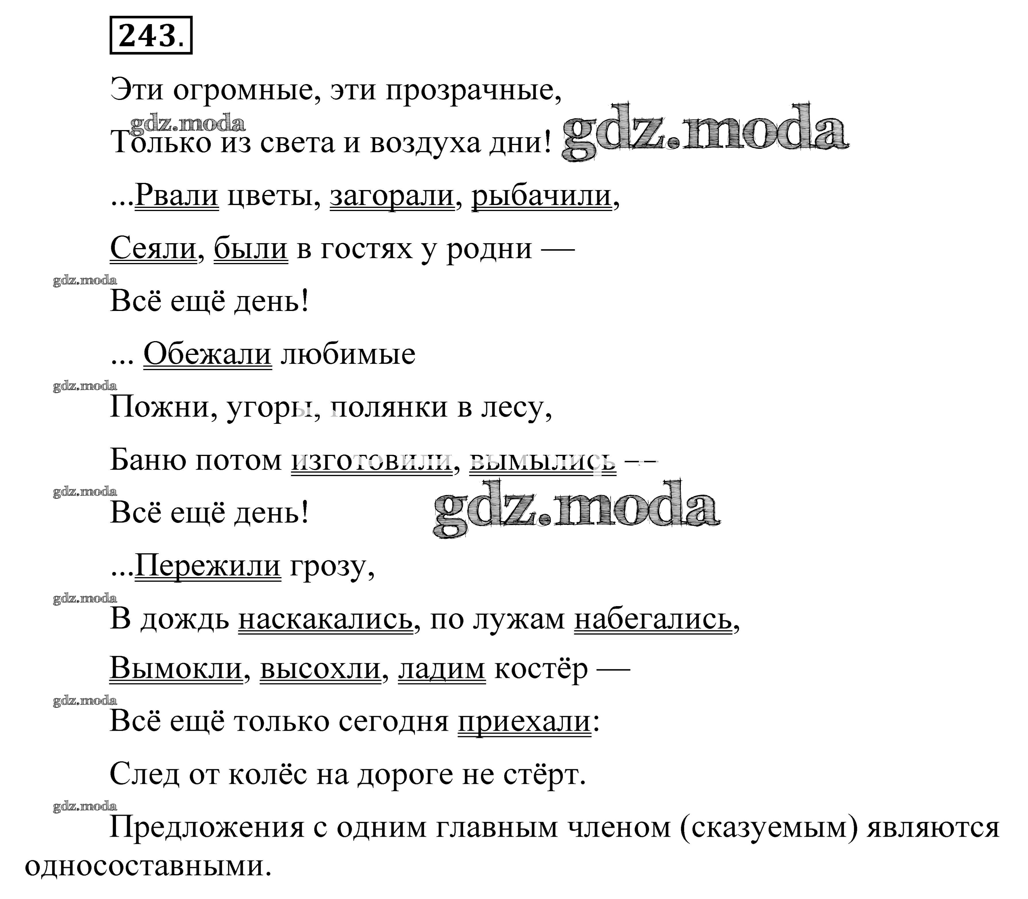 ОТВЕТ на задание № 243 Практика по Русскому языку 8 класс Пичугов Вертикаль