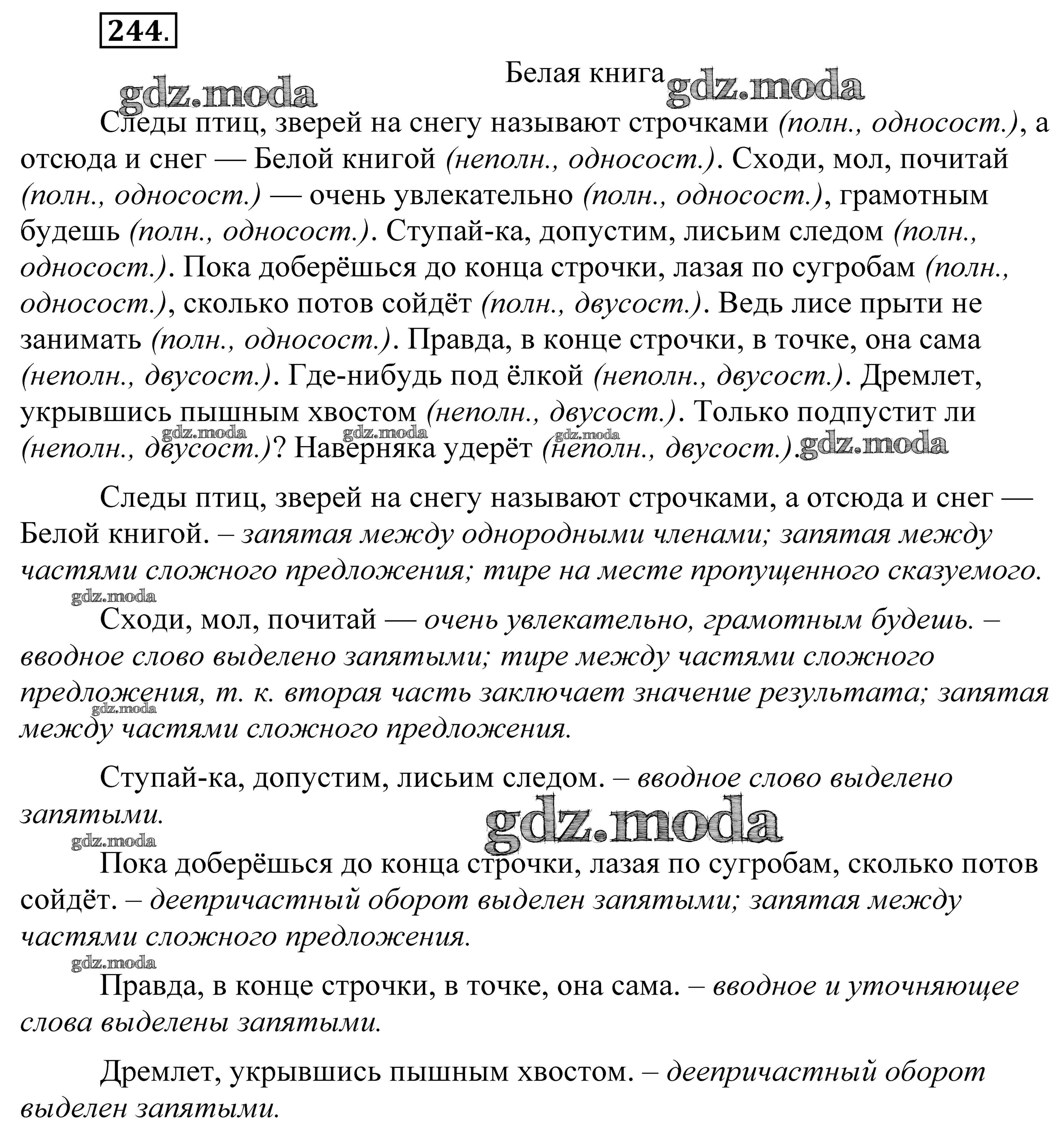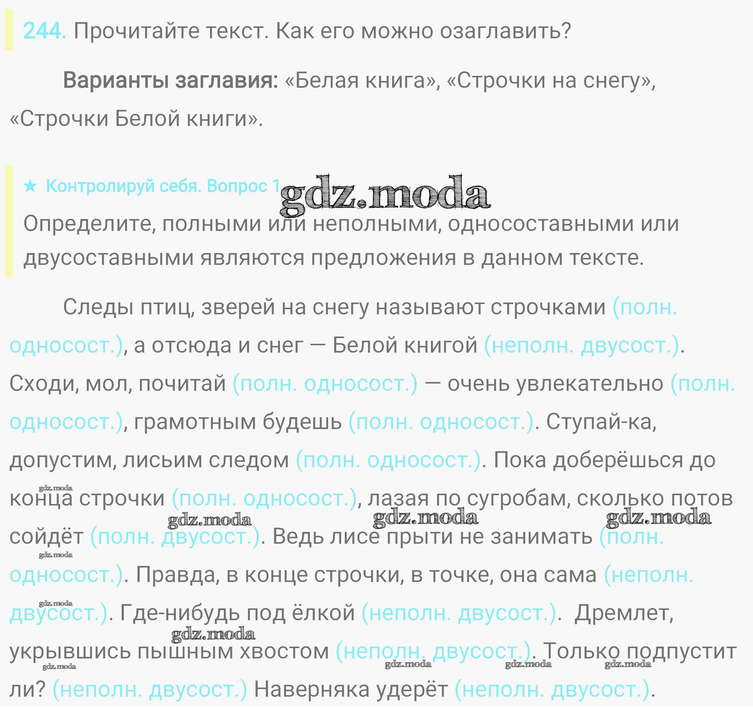 ОТВЕТ на задание № 244 Практика по Русскому языку 8 класс Пичугов Вертикаль